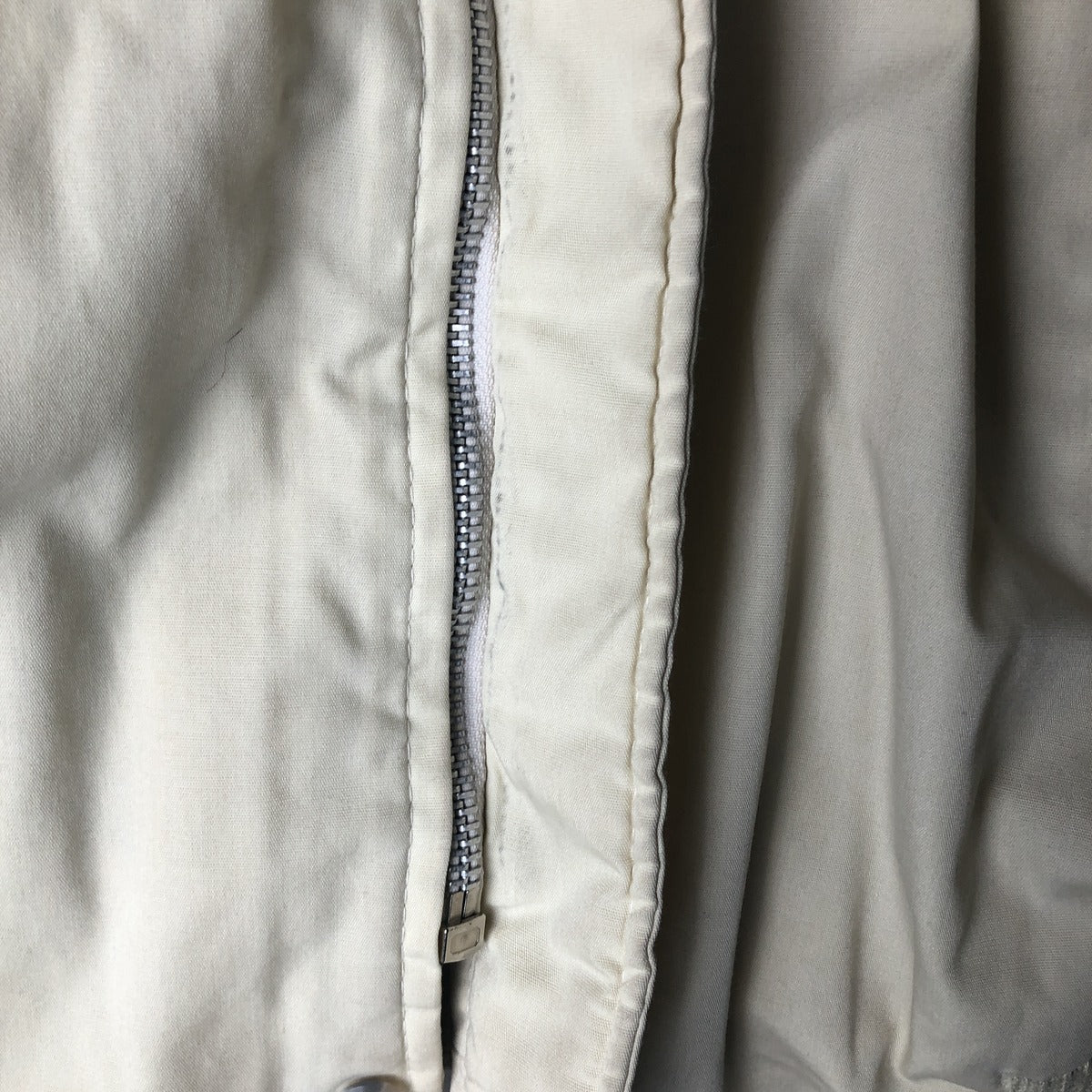 -Stain on the inside of the front, inside the zippered right abdominal pocket, under the entire front placket, and on the sides