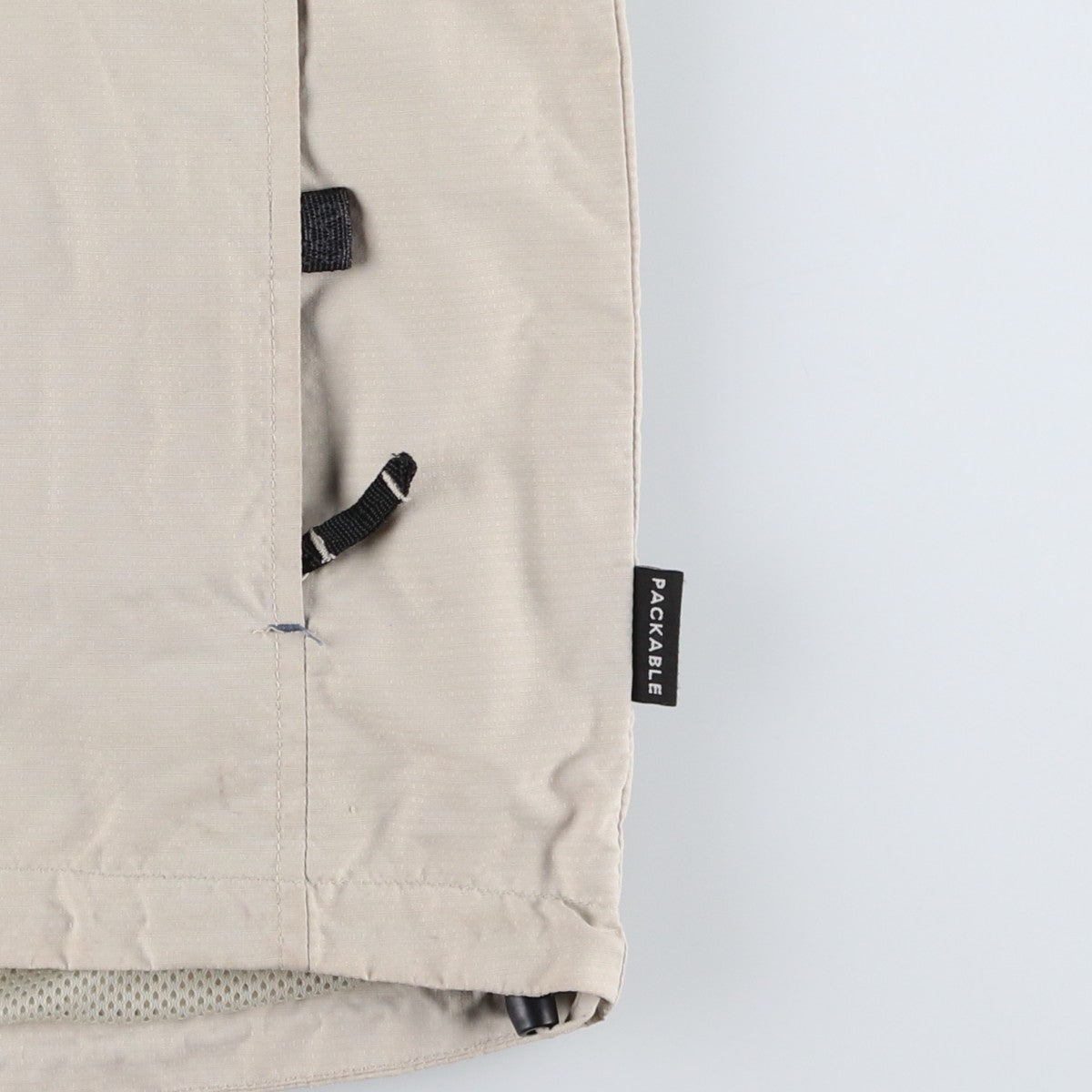 | Characteristics | Thin / Hood storage type / Draw cord / Full zip / Snap button |