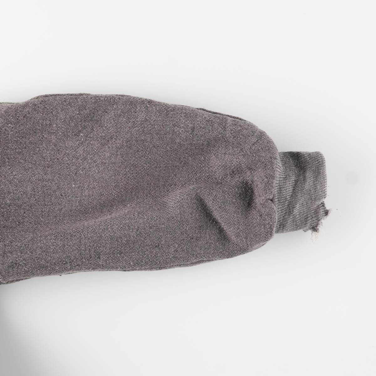 -Rear, tear and abrasion at the end of the right sleeve. Surface baldness on the right arm.
