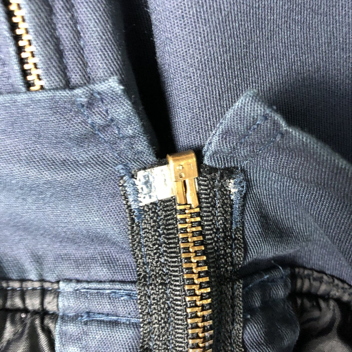 - Zip end tape missing on the left side