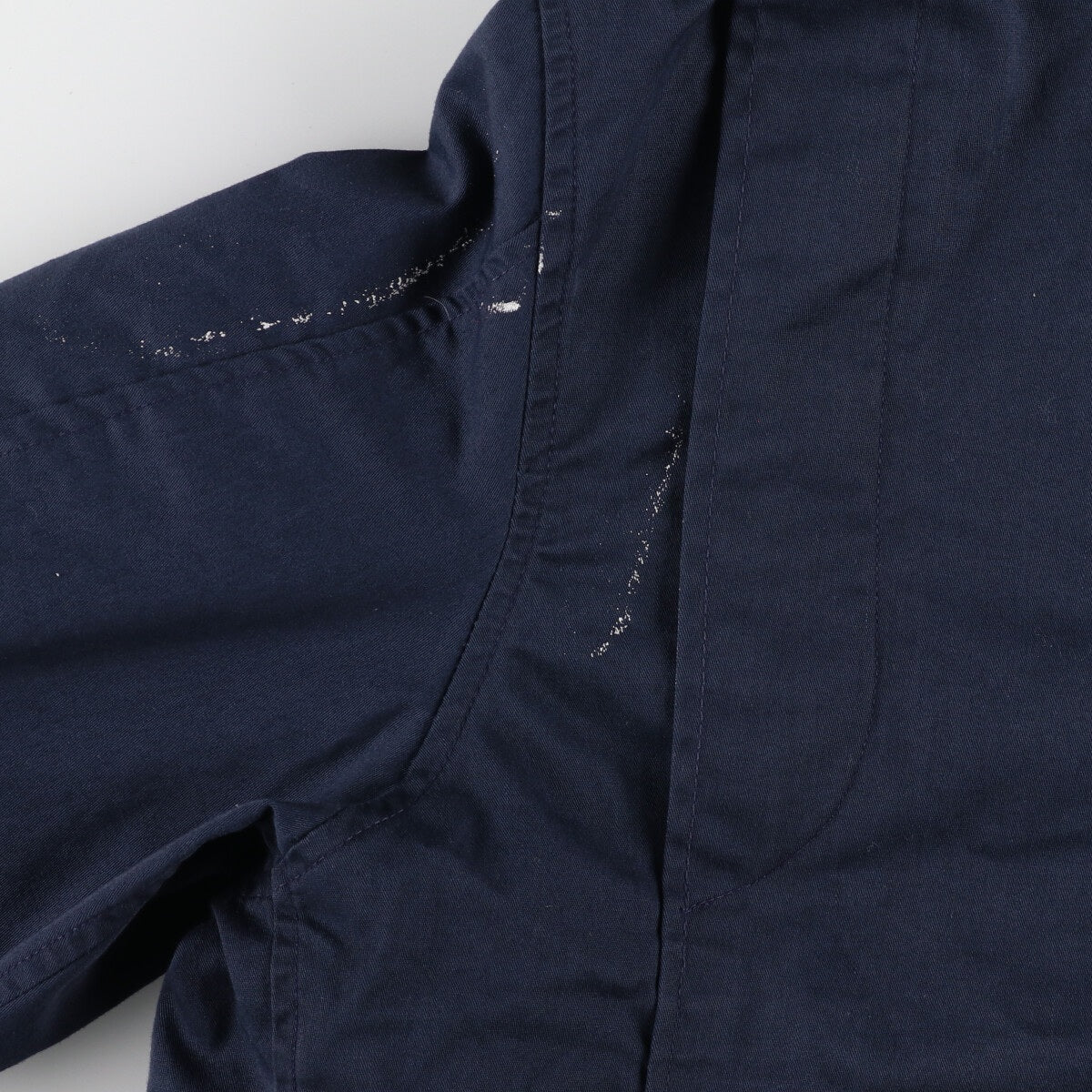 - Stain on back, left shoulder, left hem and right arm