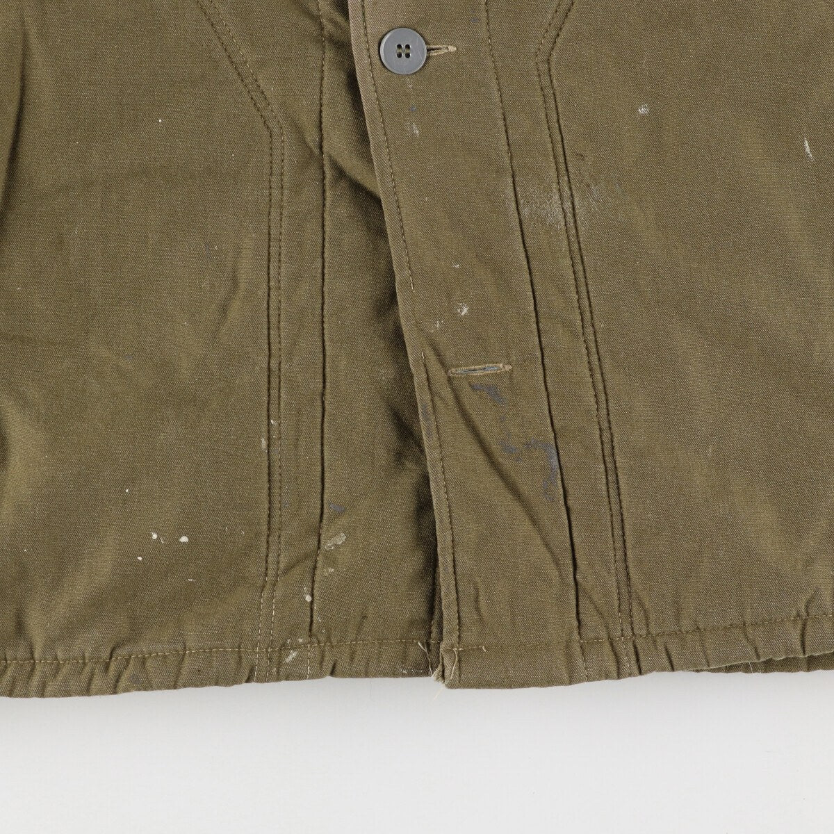 - Stains on the front, collar, right shoulder, abdomen, hem and both sleeves