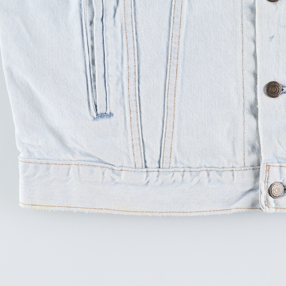 - Front hem chafing, stain