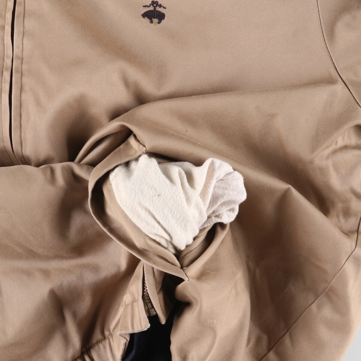 -Stain on the inside, right sleeve end, both armholes, left hip, rubbing on the right sleeve end, hem zip end tape peeling