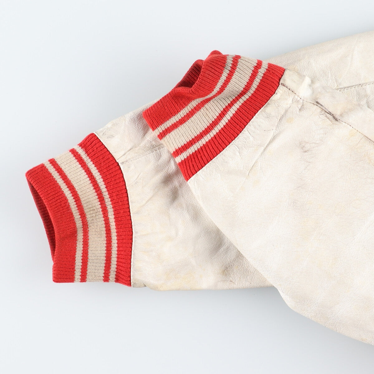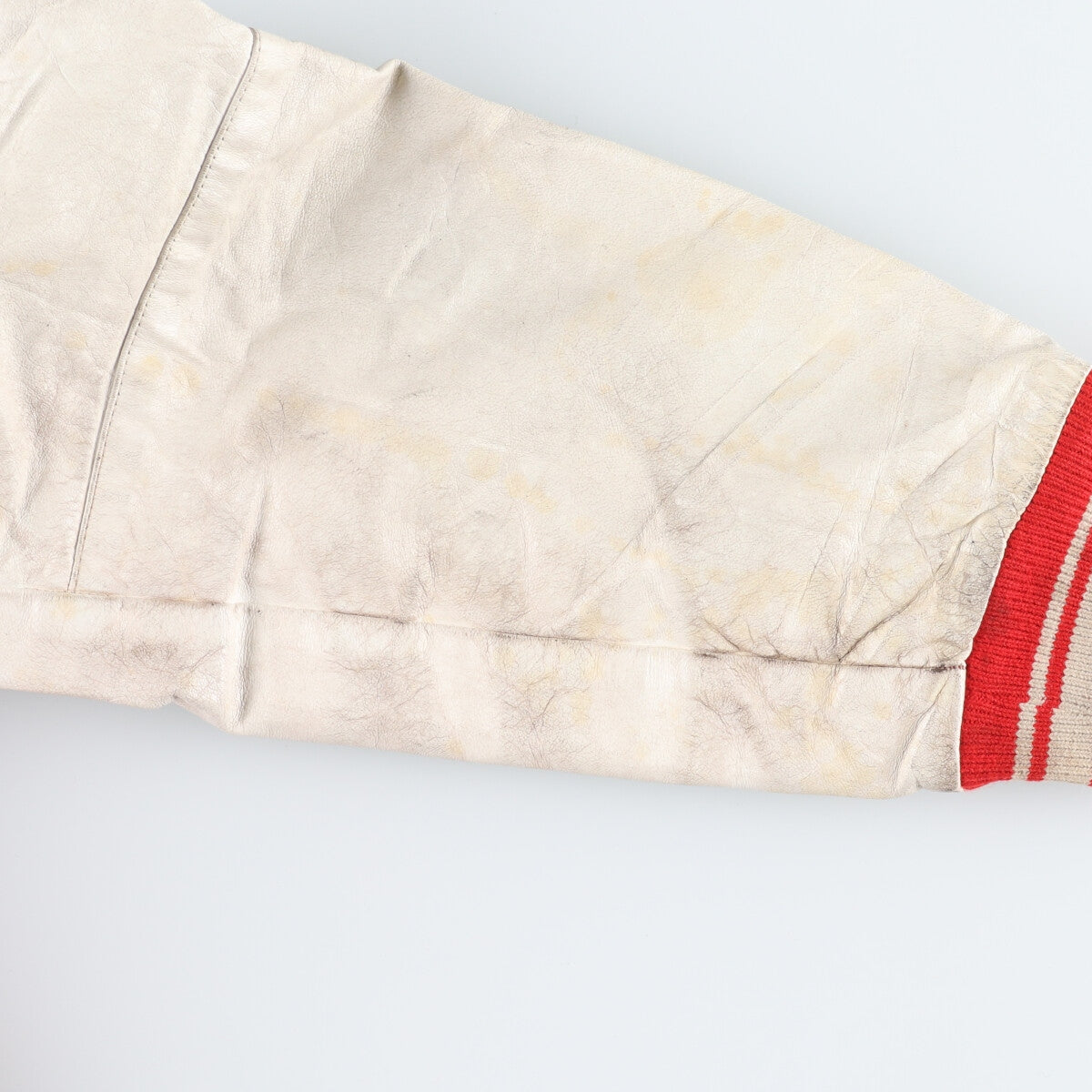 - Leather peeling on the front and left sleeve