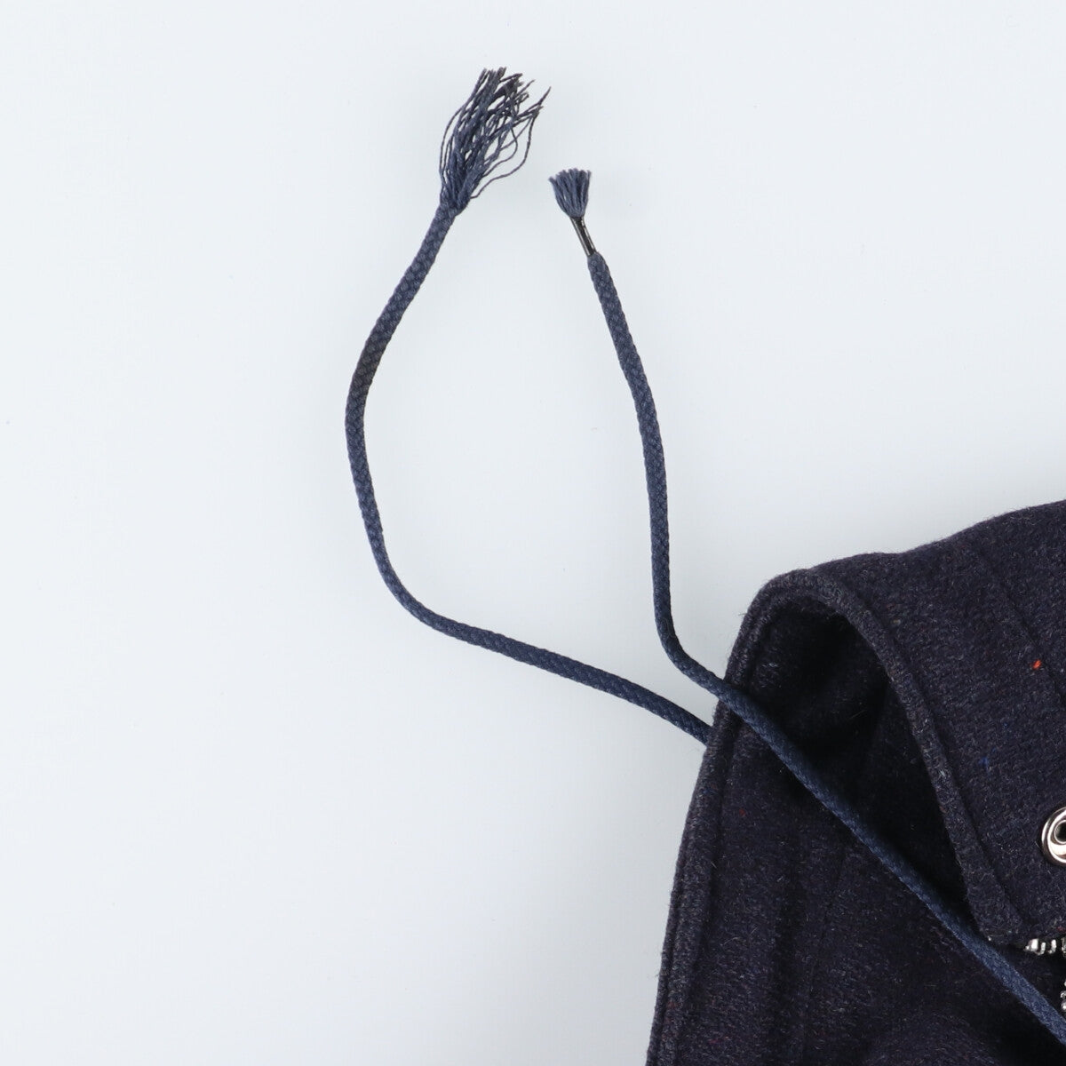 -Frayed ends of hood strings