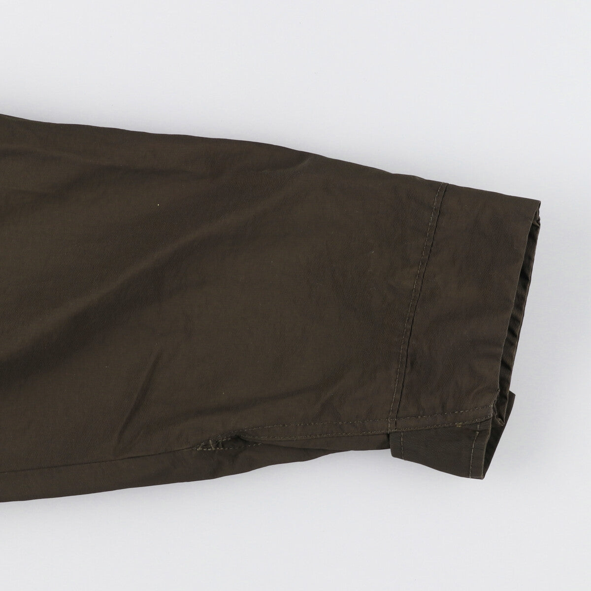 - Stain on back, right pocket, both cuffs, loose threads on left cuff, abrasion