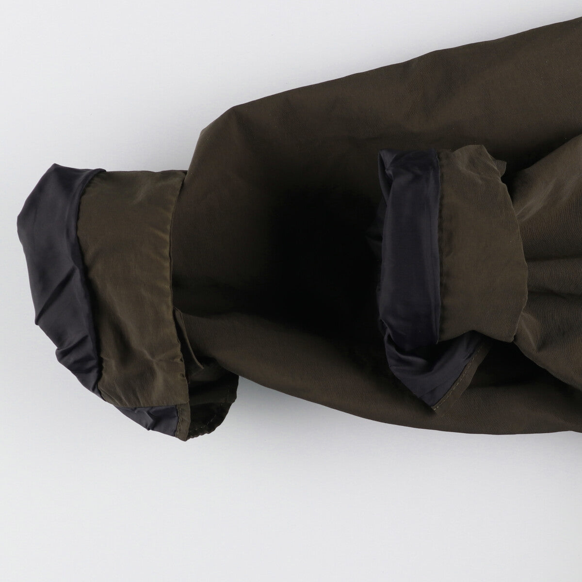 -Inner, hood, and both cuffs are stained, and the hem is frayed