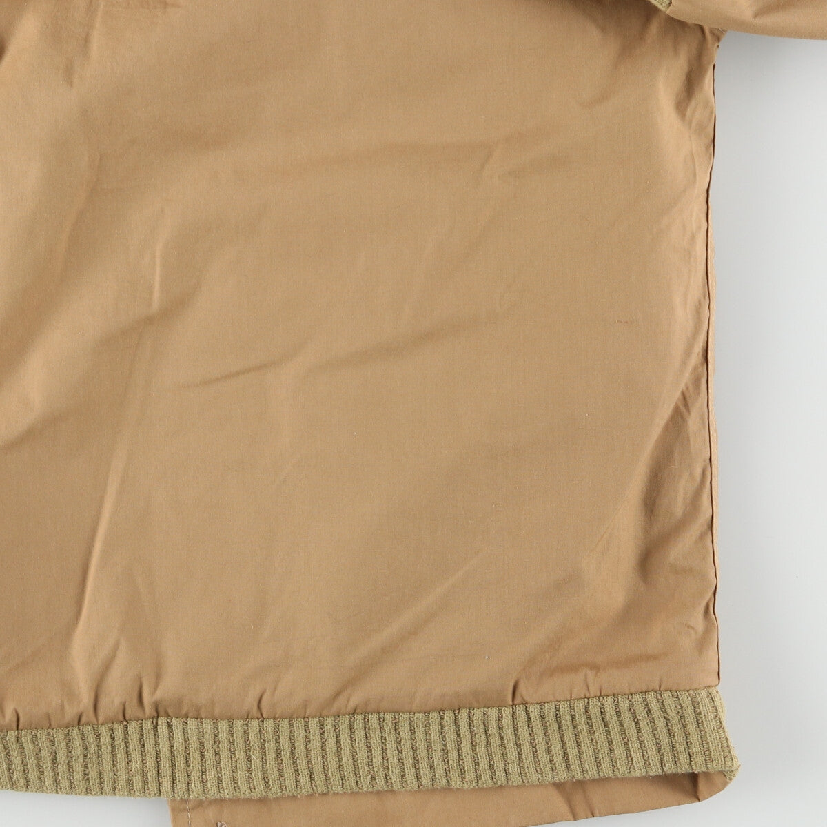 - Stain on both sleeves, Fray on top right hem, Ribbed hem slack