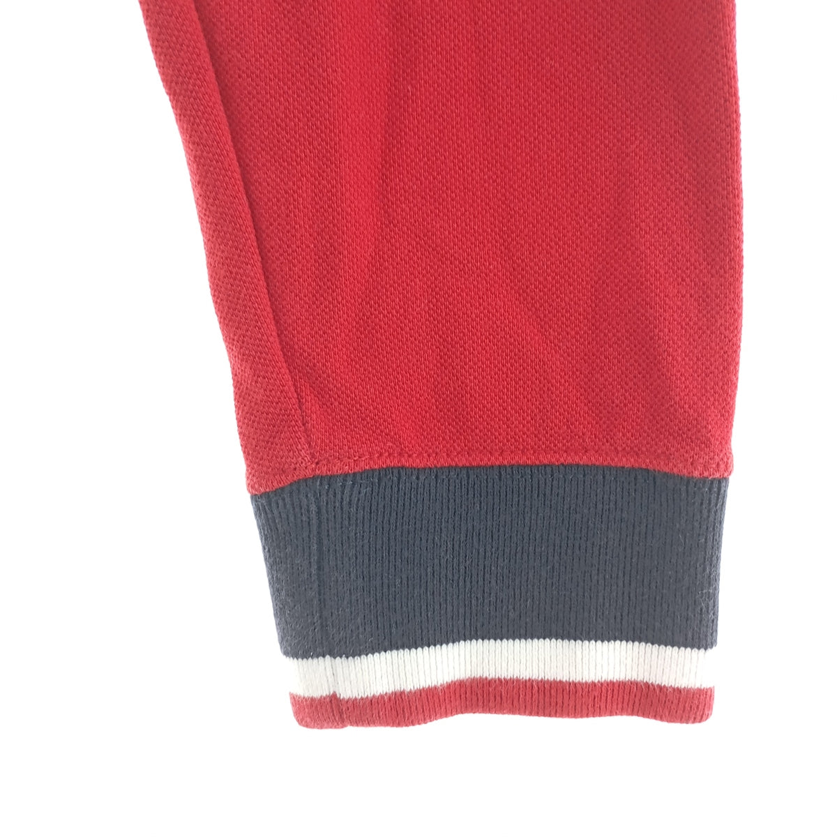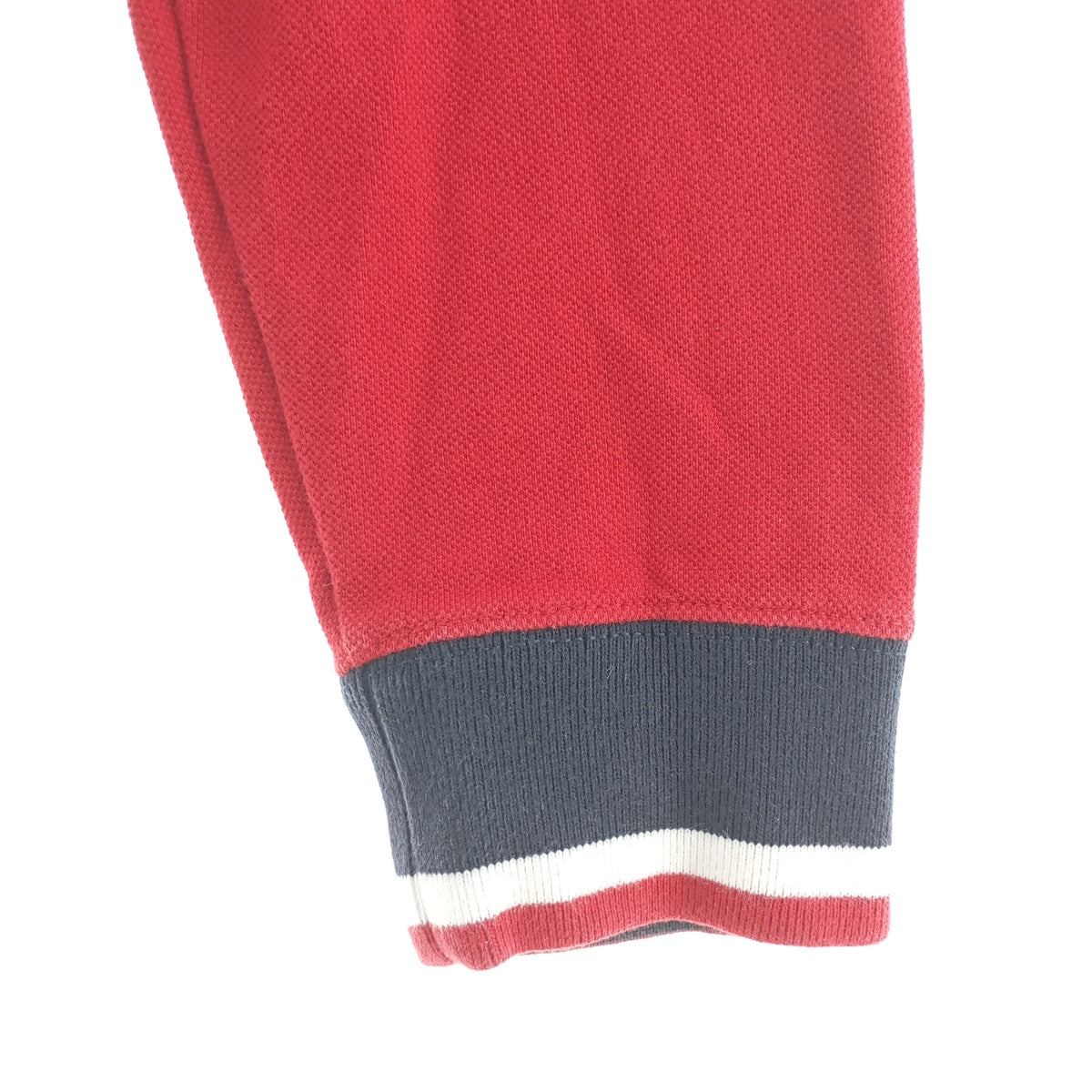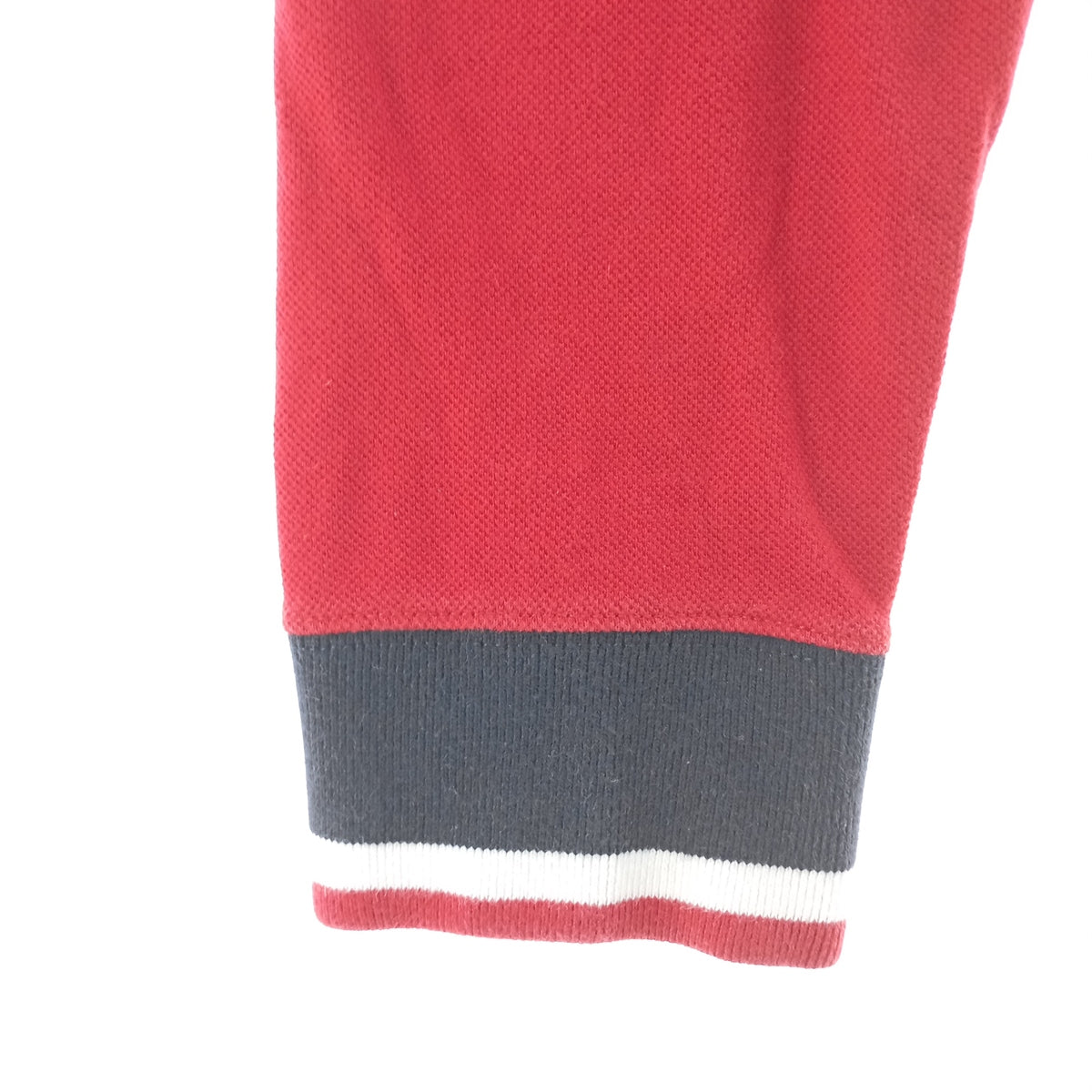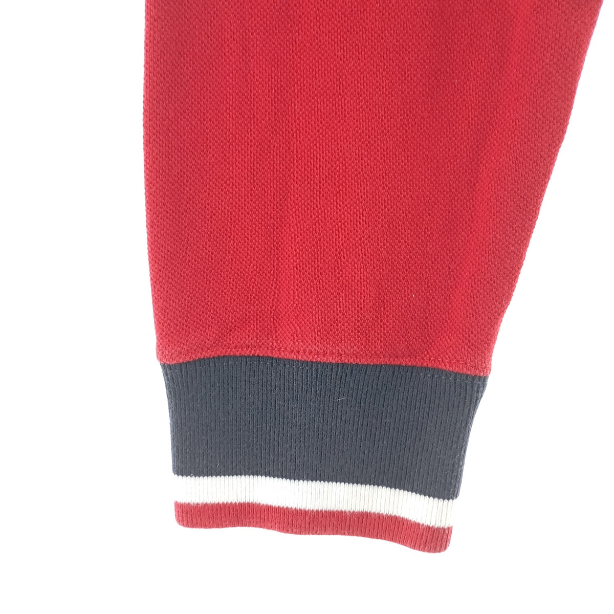 - Stain on front, collar, neckline, left and right cuffs