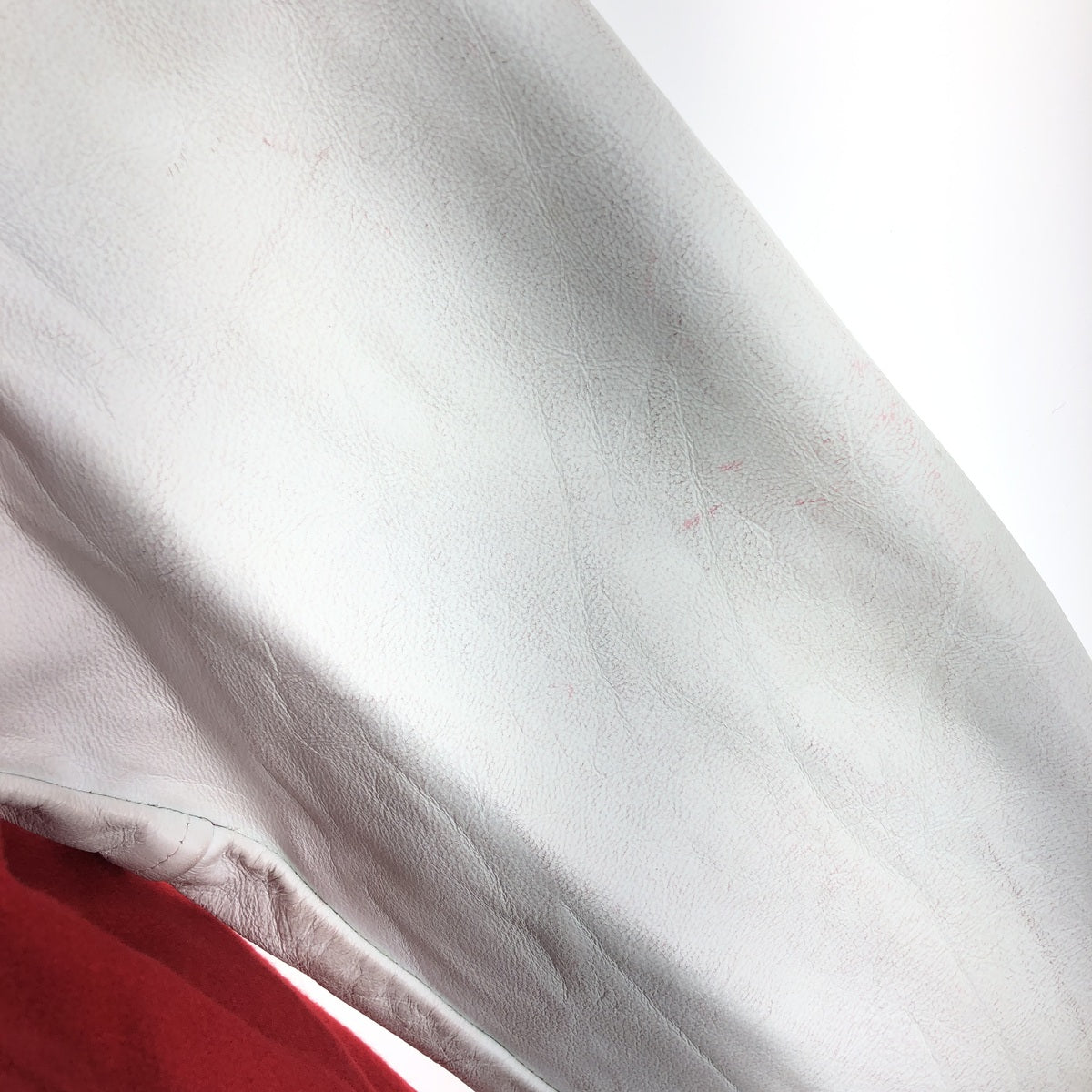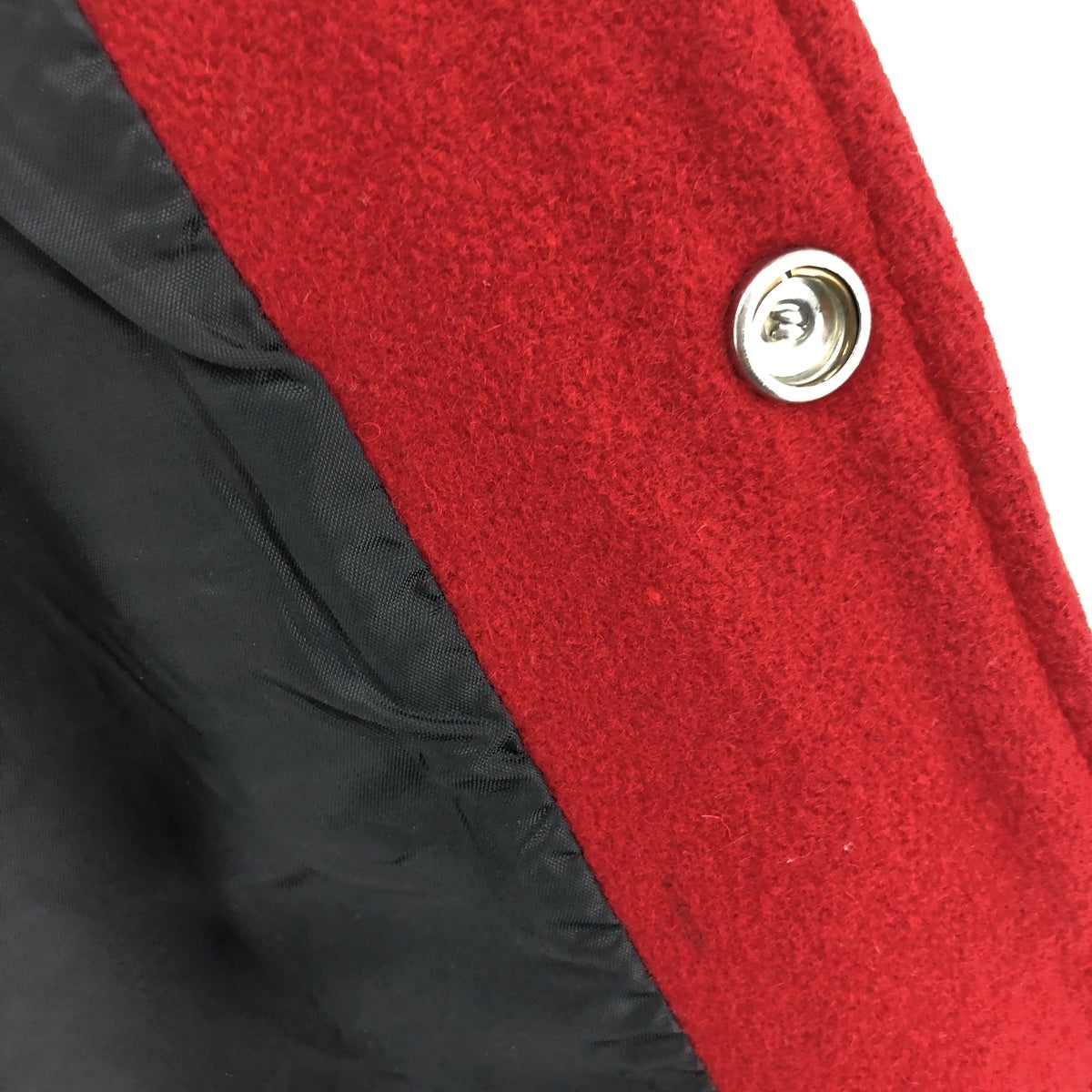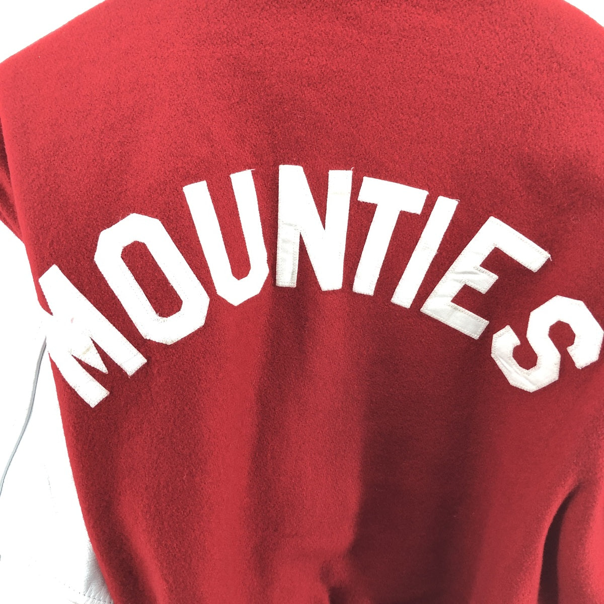 - Stain on back, both sleeves, collar, back patch, and right hem