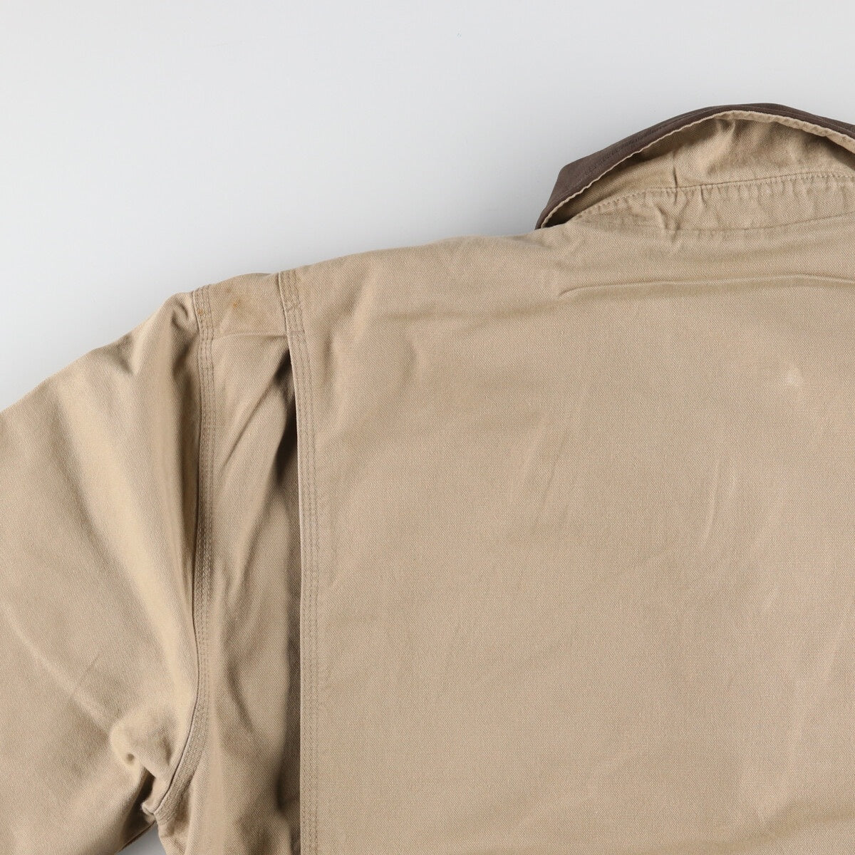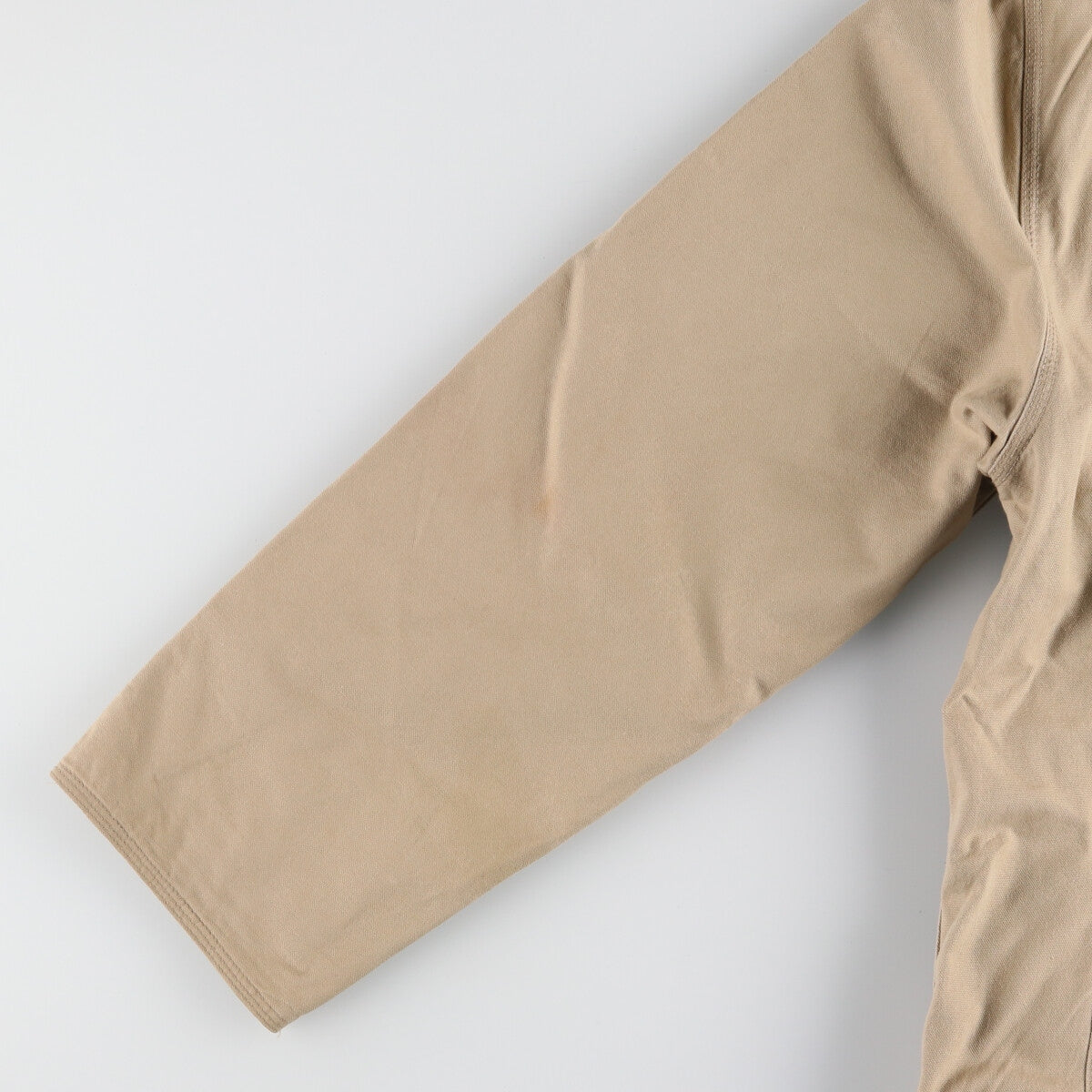 - Stain on back, both sleeve ends, right sleeve, and left shoulder