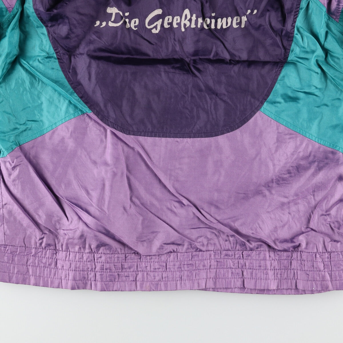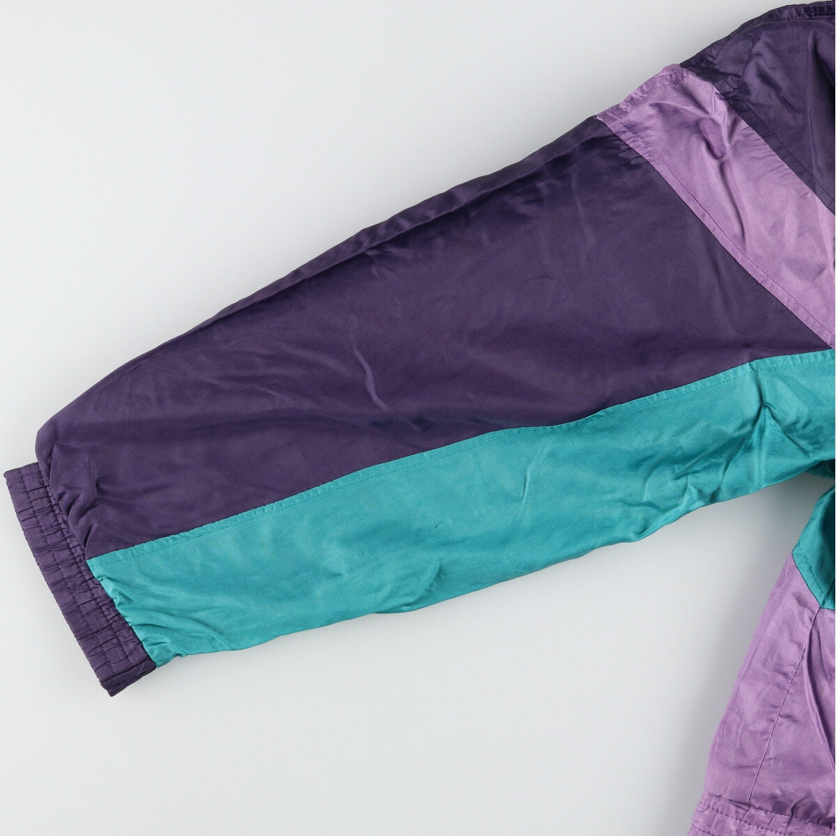 - Stains on the front, neck, zipper, hem and both cuffs