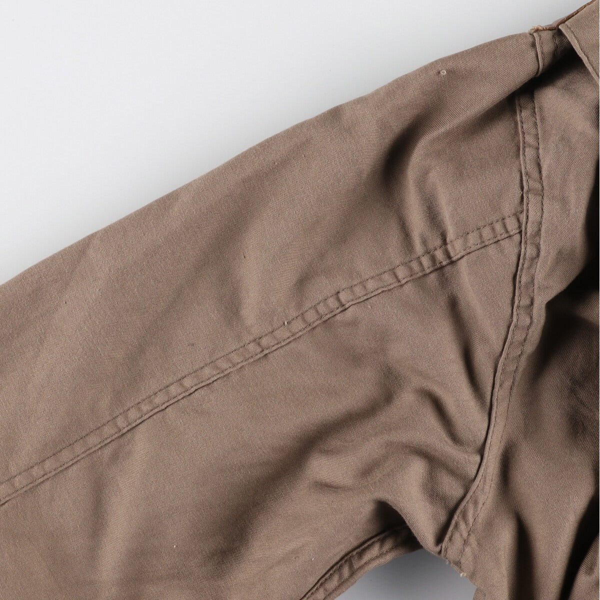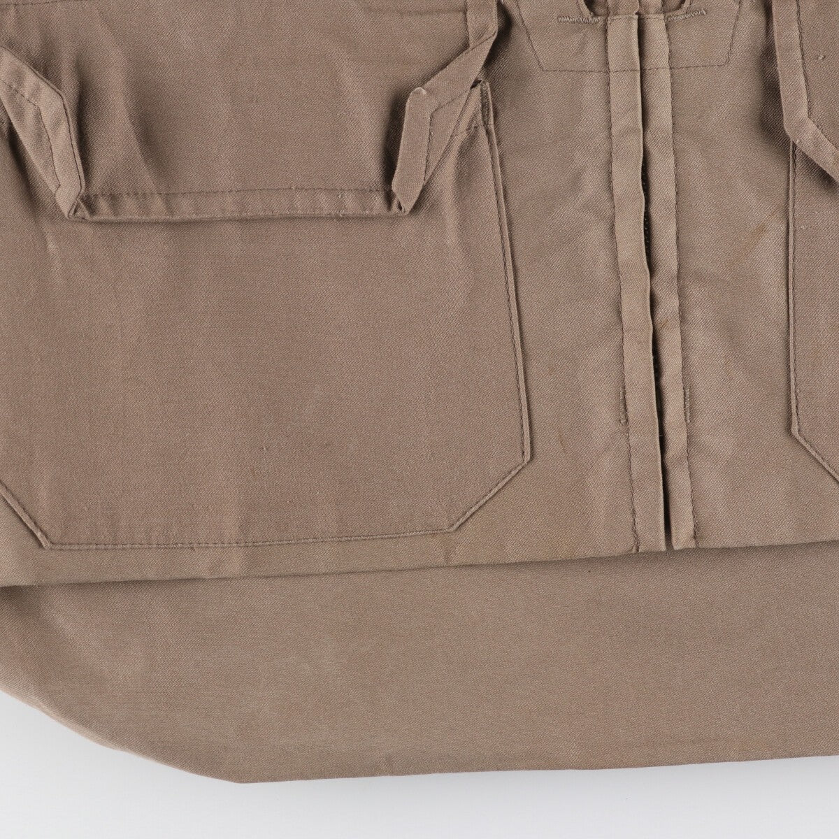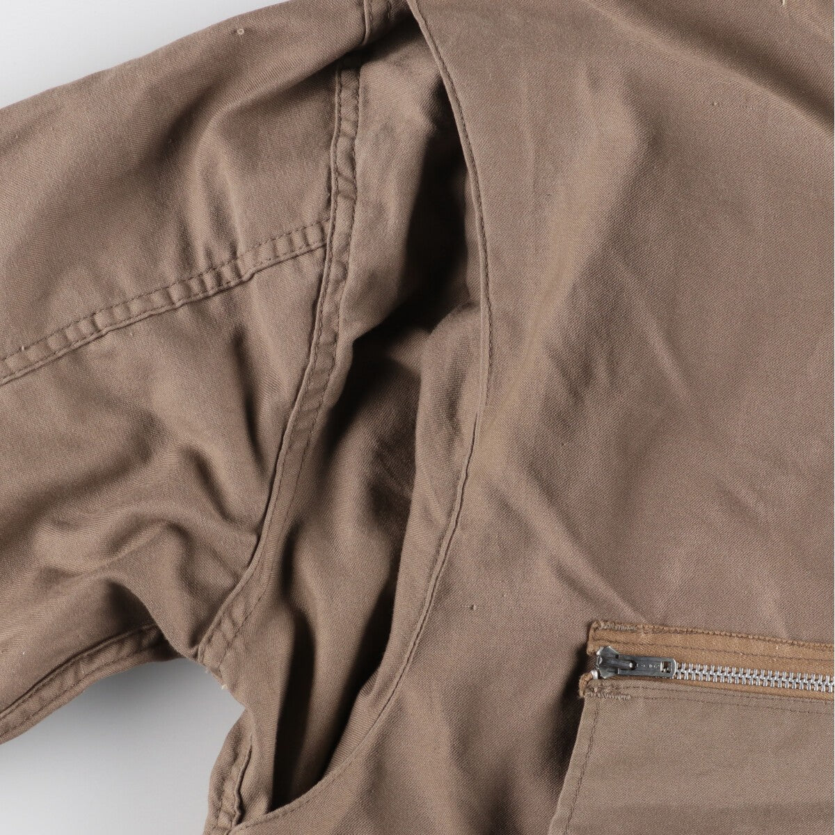 -Stain on the front, both sleeves, both abdomen and hem -Front, front zip top deformed, coating peeling inside both abdomen pockets -Front, rubbing on left shoulder, loose threads on both sleeves and left abdomen pocket -Rear, stain on right sleeve, both hips and hem -Rear, loose threads on both sleeves, left back and waist -Rear, coating peeling inside waist pocket -Stain on right abdomen and waist inside