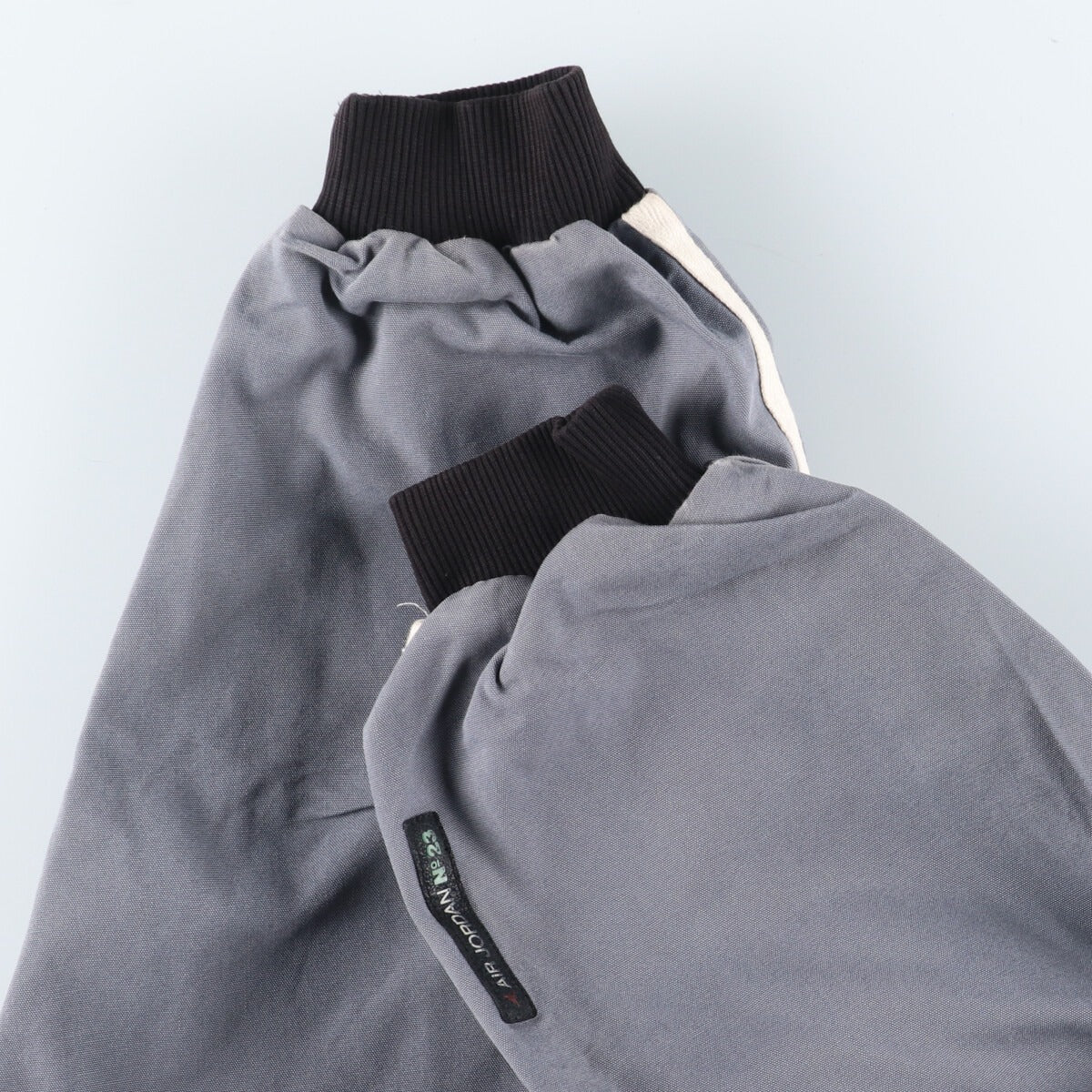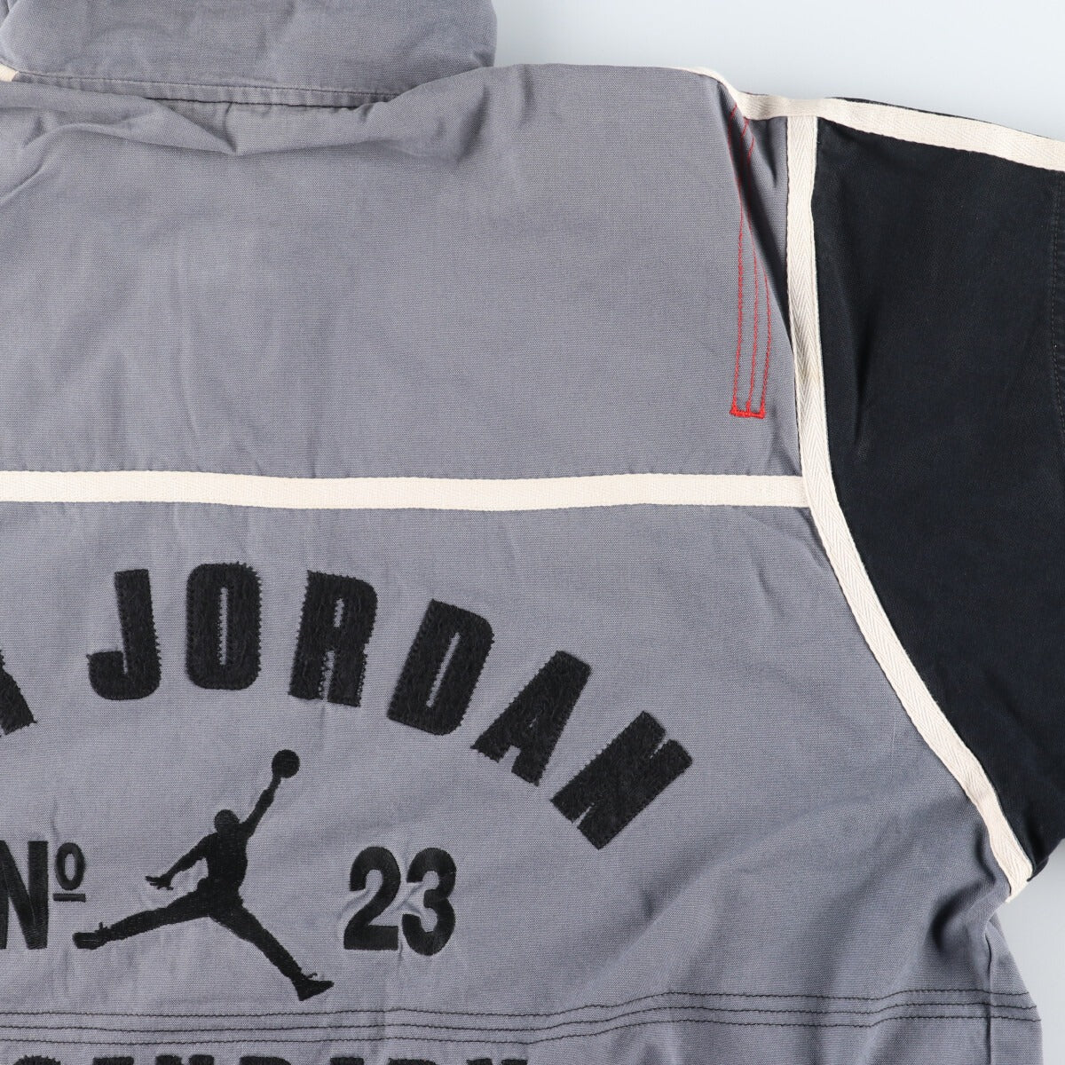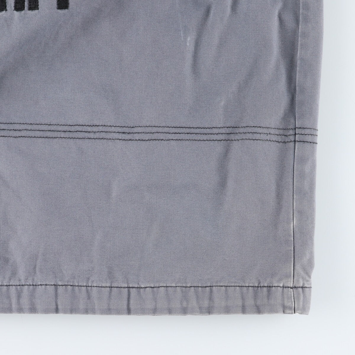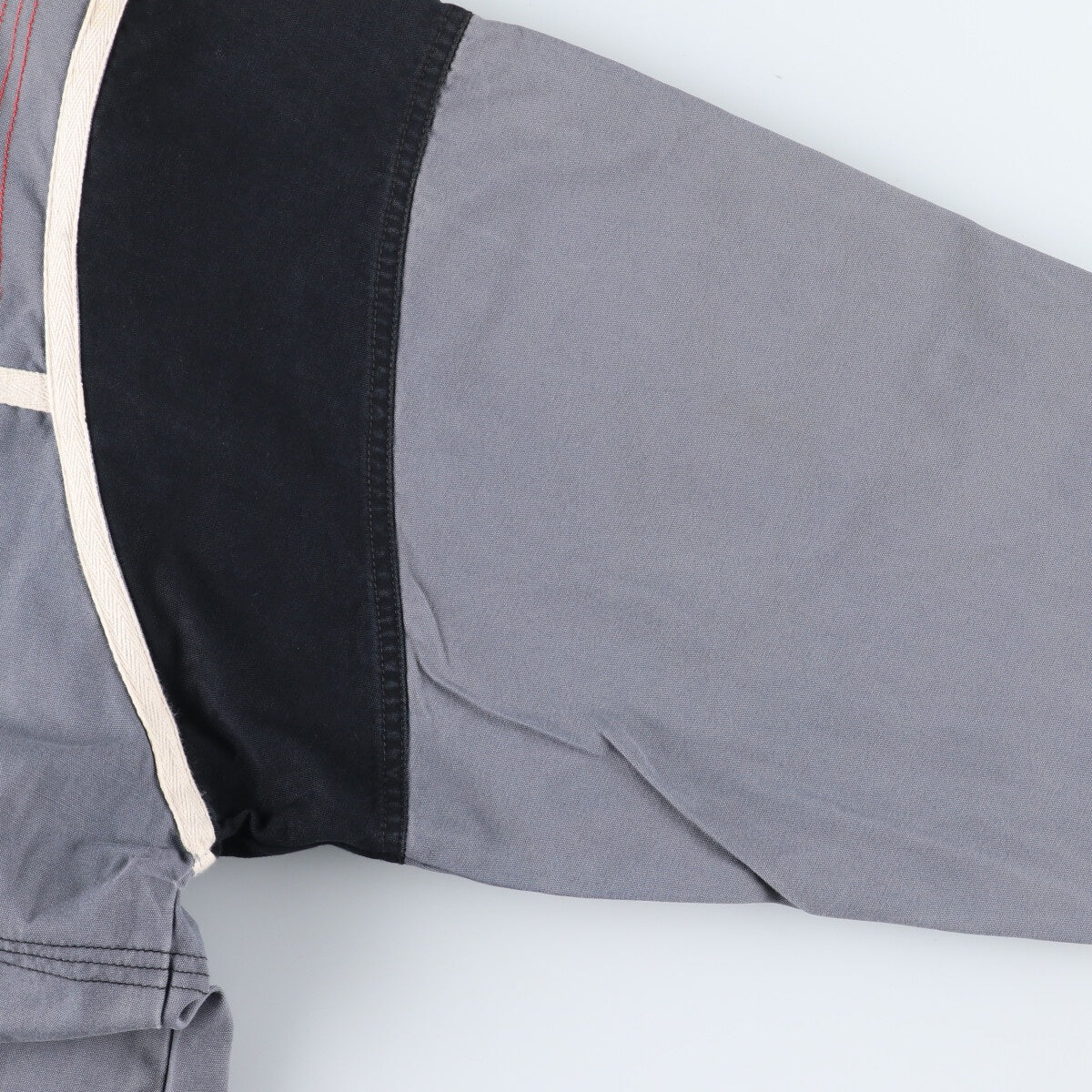 -Stain on entire line -Stain on front, left arm, both sleeves, abdomen and hem -Peel on front and abdomen -Stain on back, both sleeves, waist and hem -Stain on inside, neck and right sleeve -Small hole on inside and abdomen