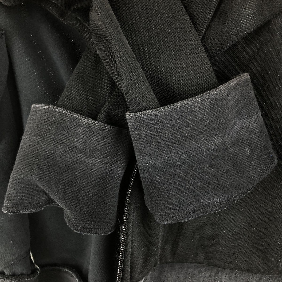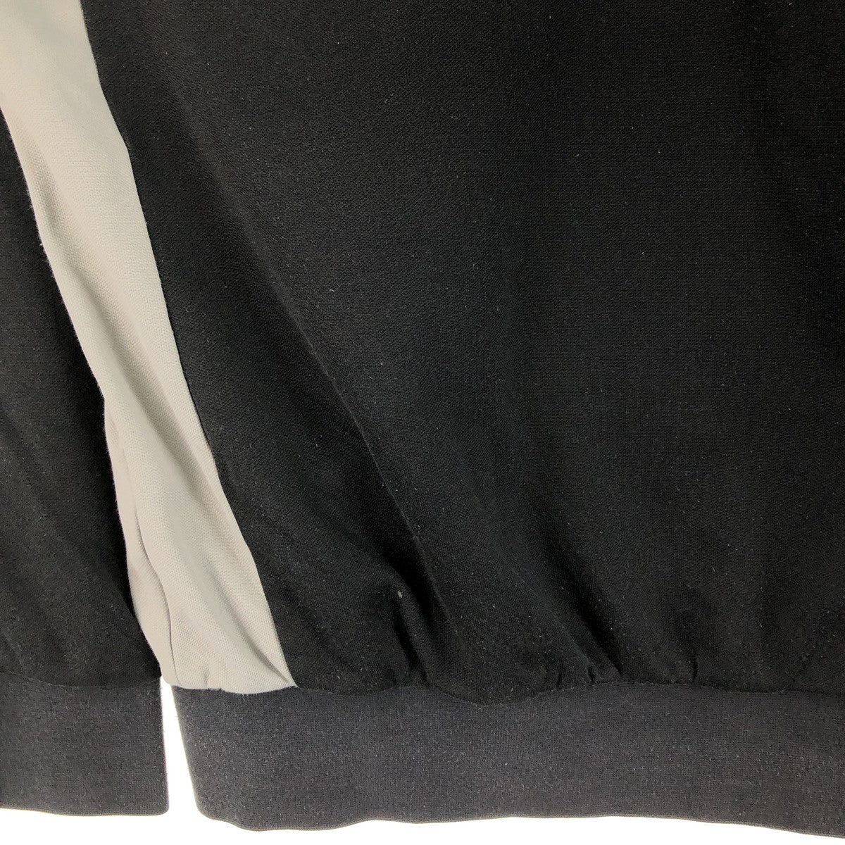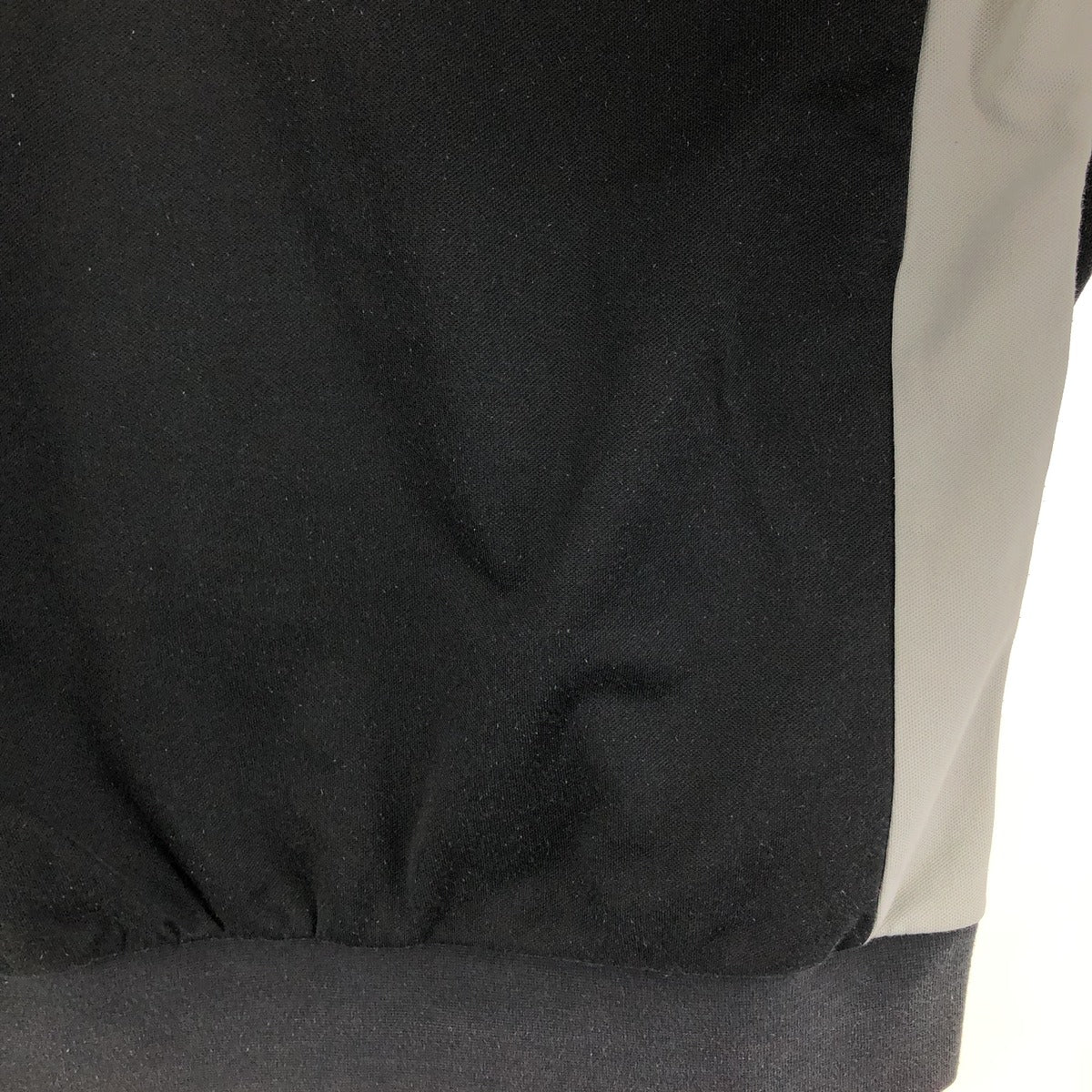 - Stain on the back, right sleeve end and hem, creases on both sleeve cuffs