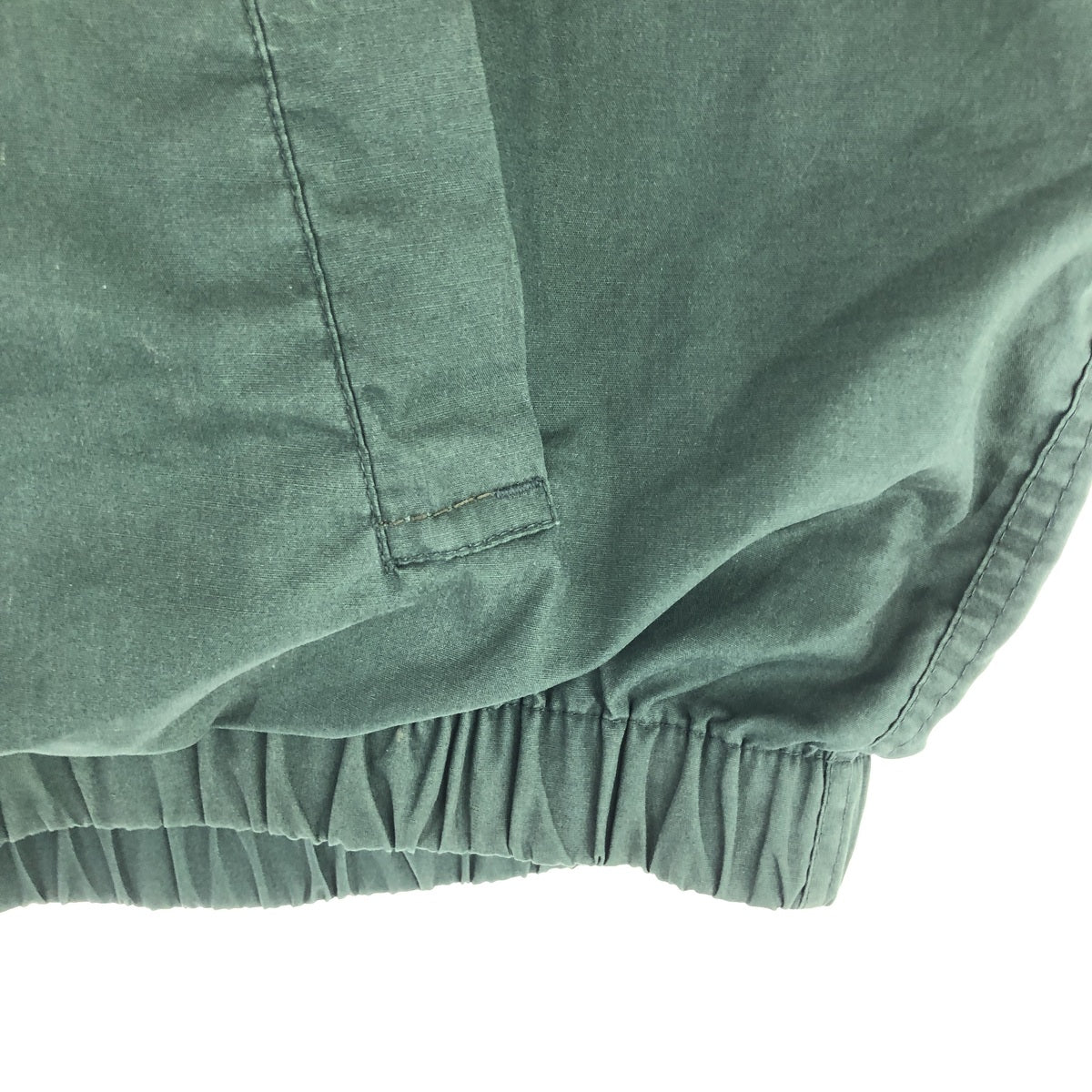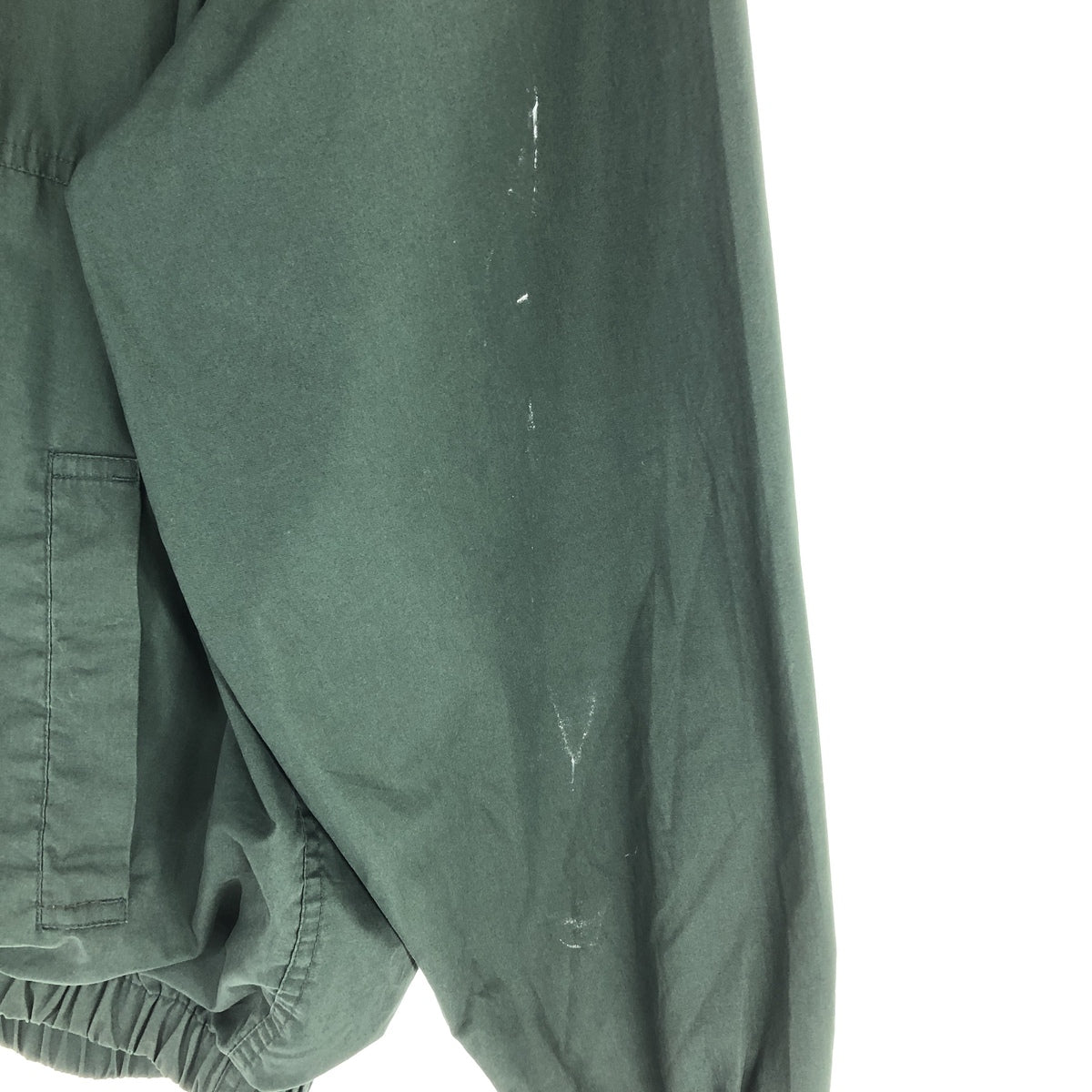 - Repair marks on the front and left pocket opening; scuffs on the hem