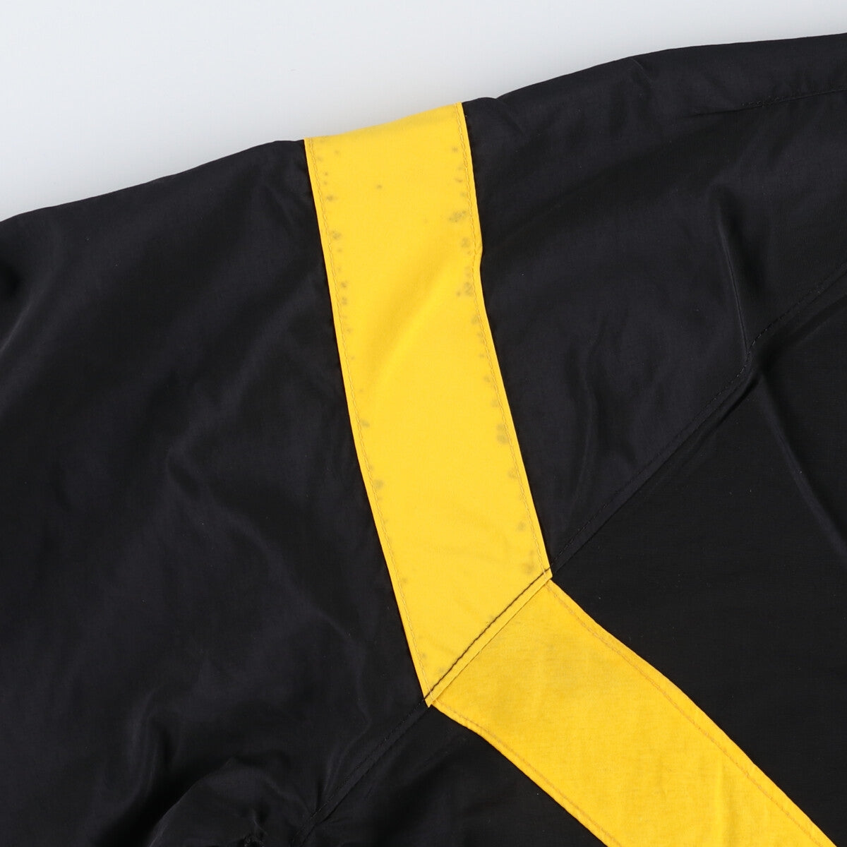 - Stain on back, shoulders, back and left sleeve