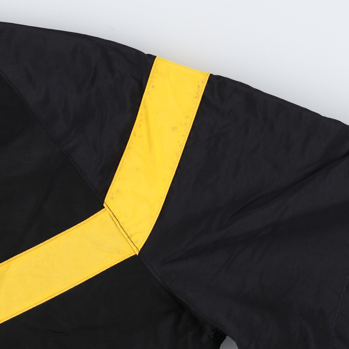 - Stain on front and left sleeve