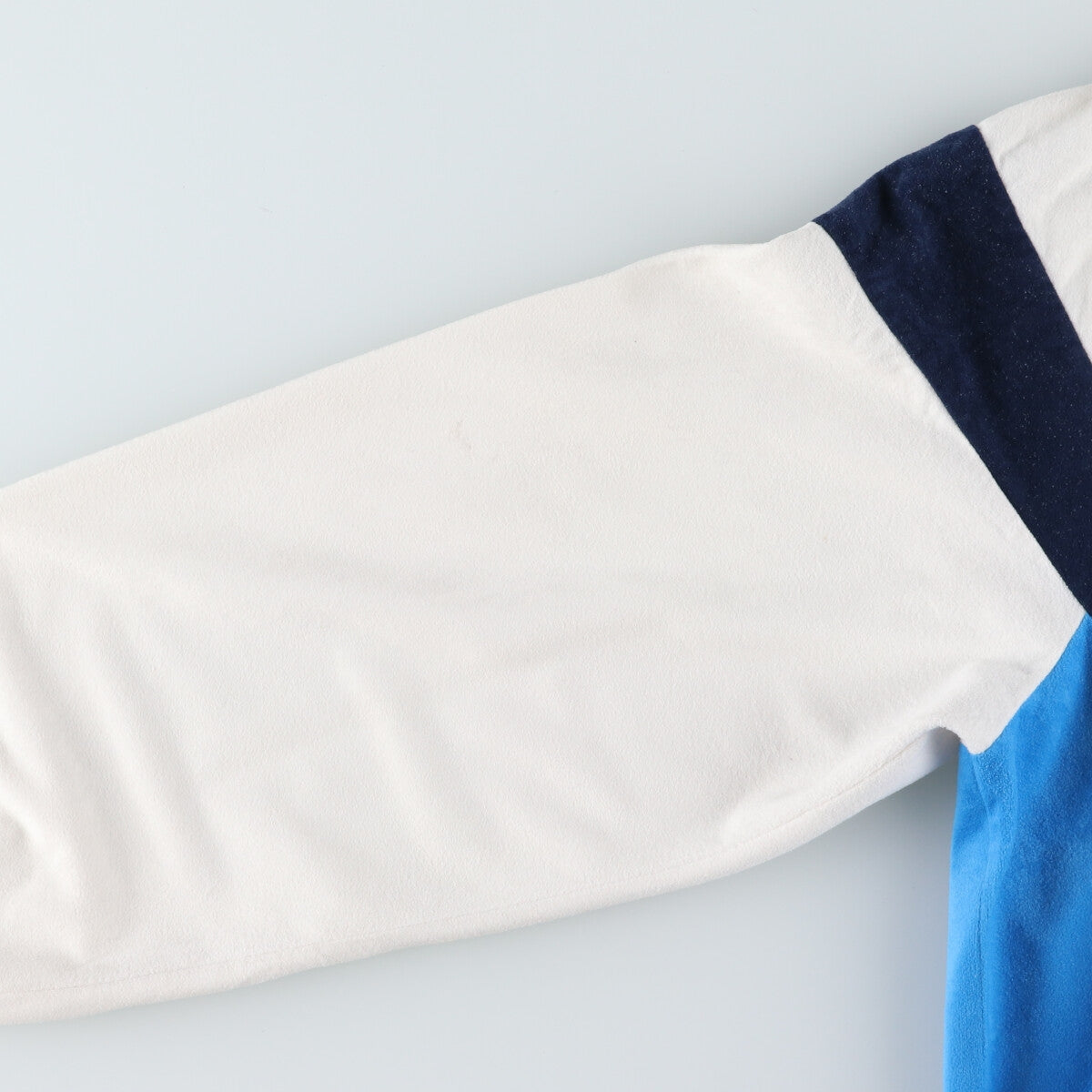 - Stain on left arm and hem at back. Peel on both sleeve ends.