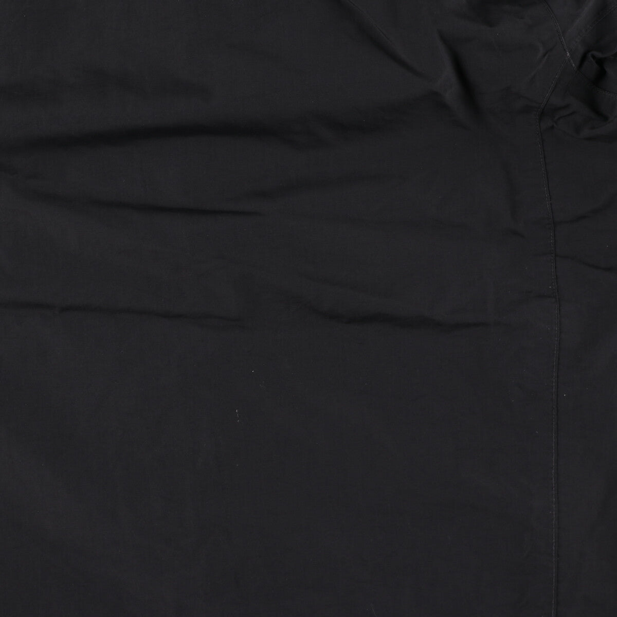 - Stain on right hem, pulled threads on waist, fraying on right sleeve