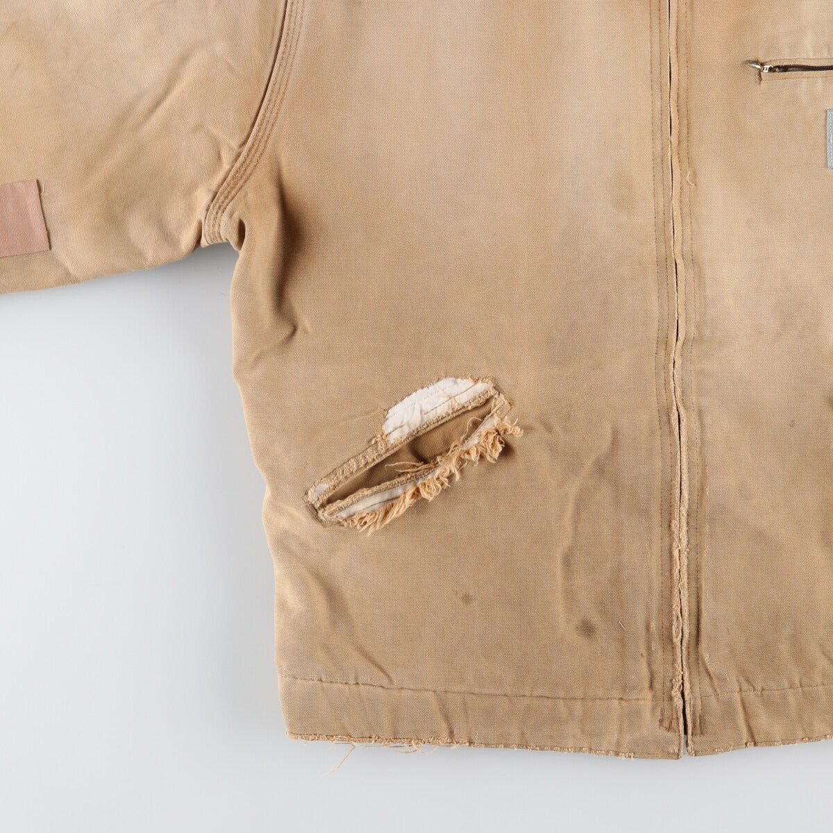 - Repair marks on the front, left arm, both sleeves and both pockets