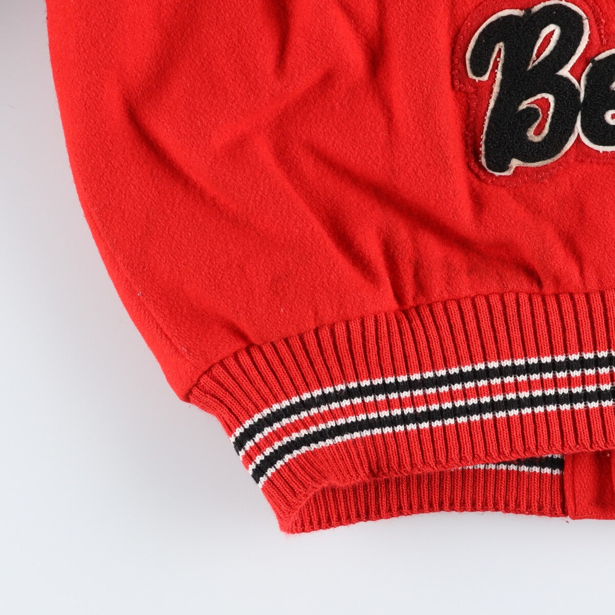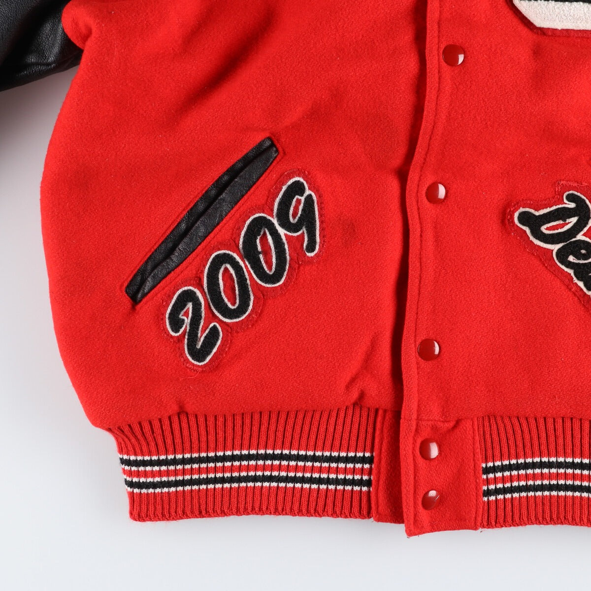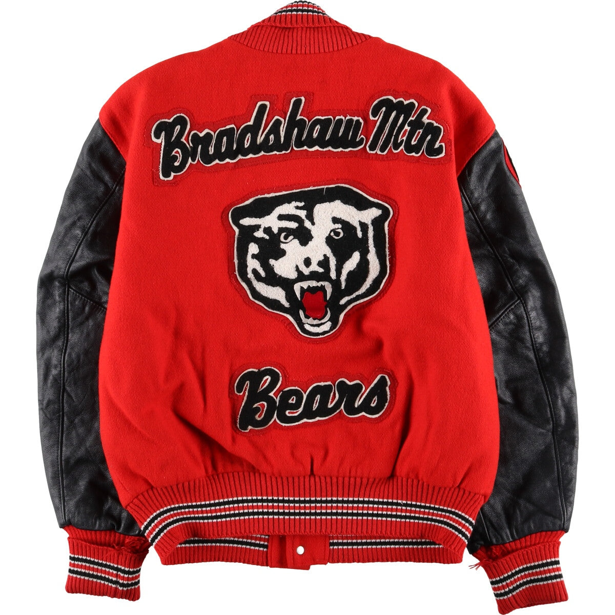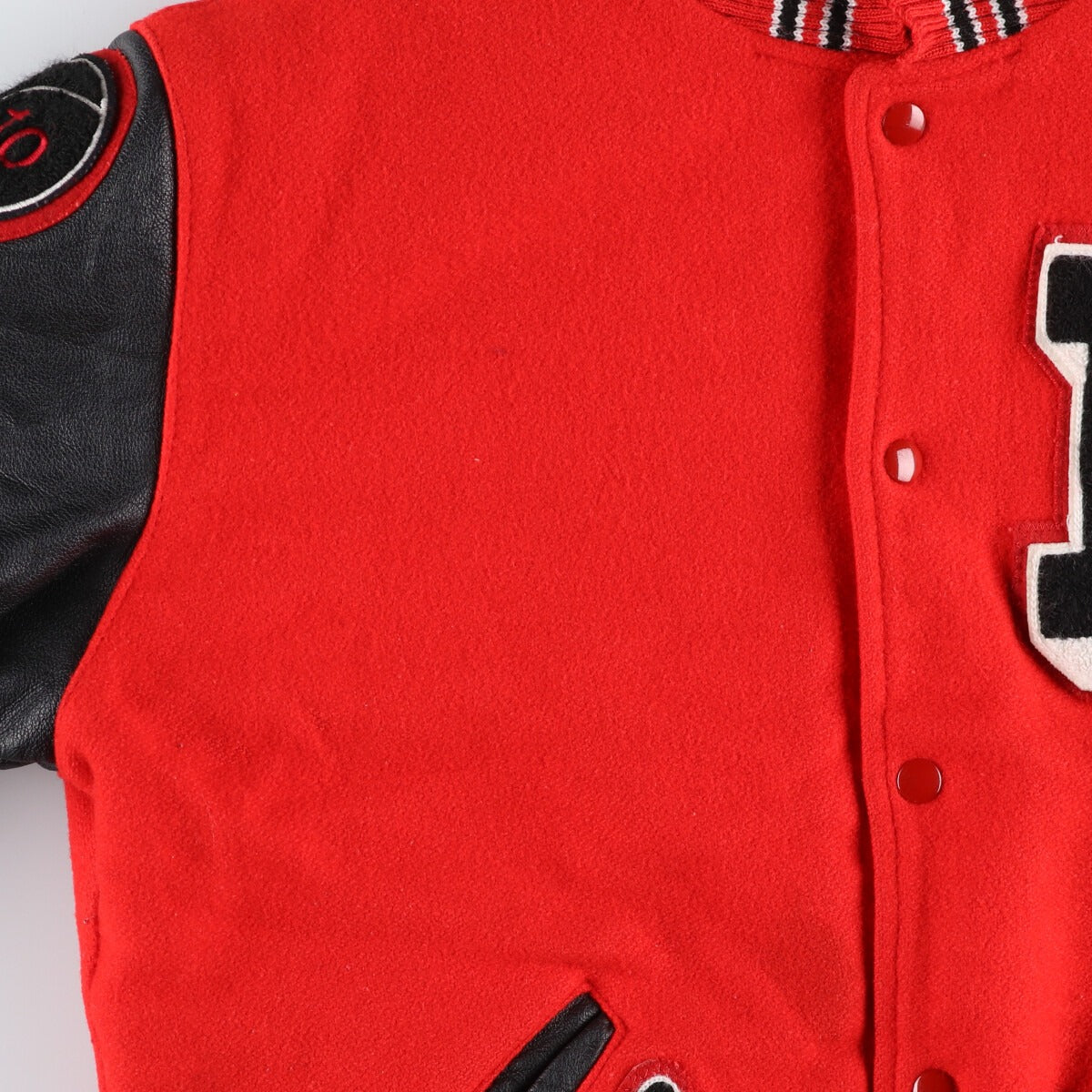 | Shape | Leather sleeve wool button varsity jacket |