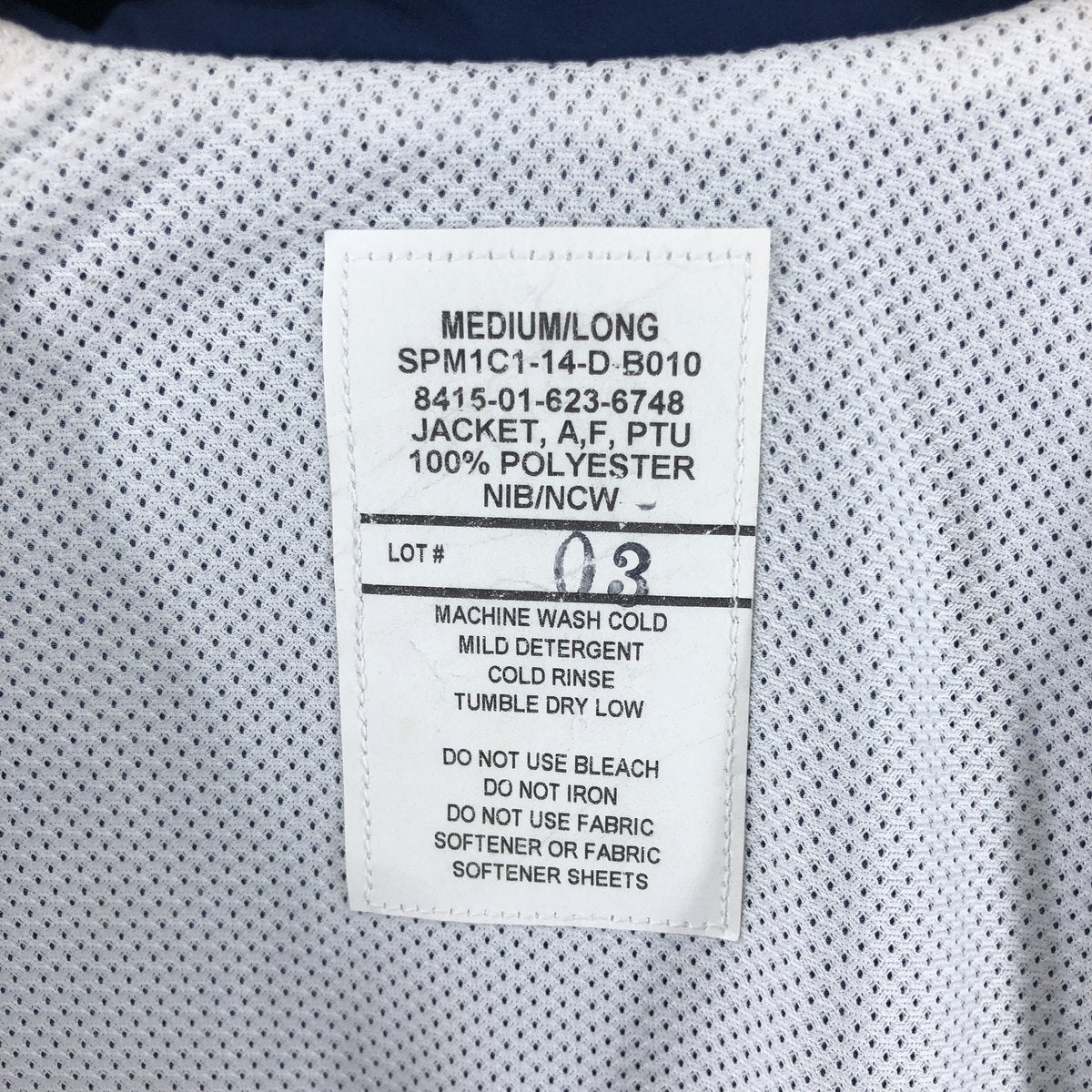 | Characteristics | Genuine US military item / Full zip / Delivered in 2014 / U.S.AIR FORCE / Mesh liner |