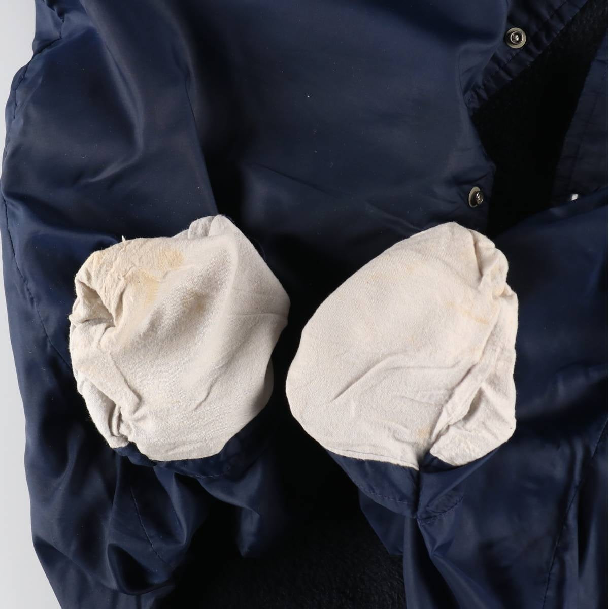 -Inner, loose threads on both arms, repair marks on right arm
