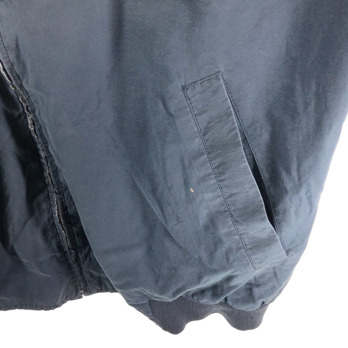 - Stain on both sleeves, left arm, right back and left hip