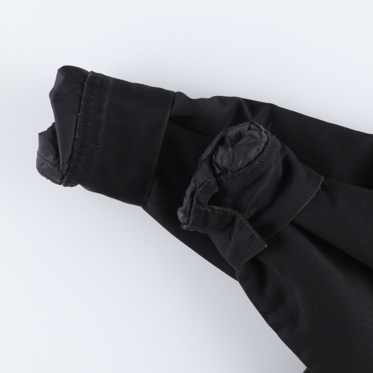 -Inner, right arm and hem have loose threads