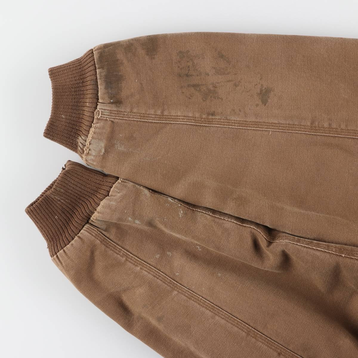 -Stain on back, near right armhole, left arm, right arm, right sleeve end, left hem. Rubbing and holes on left sleeve end. Rubbing on waist.