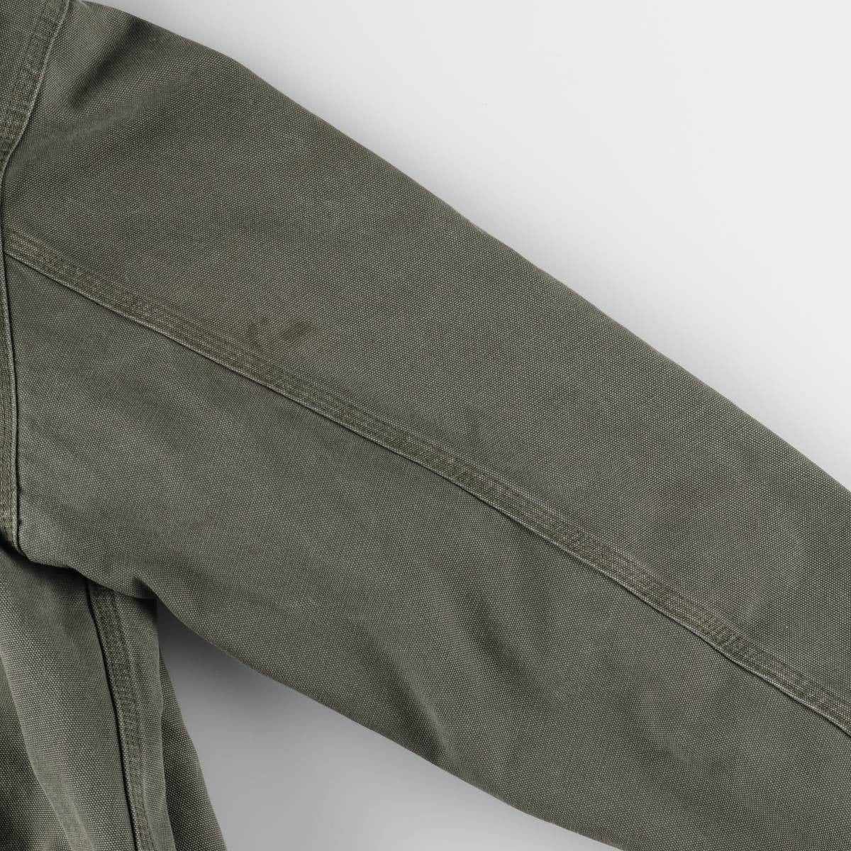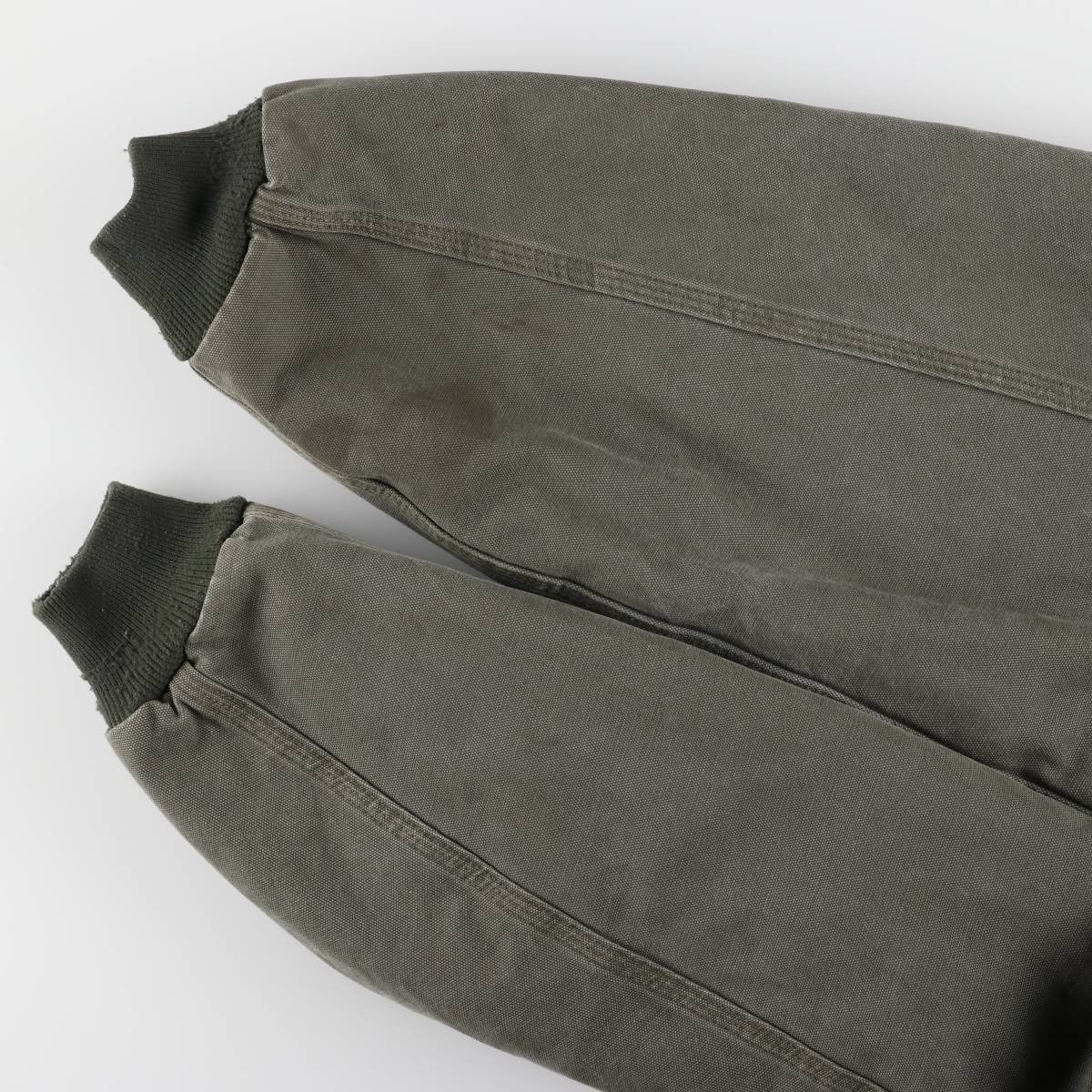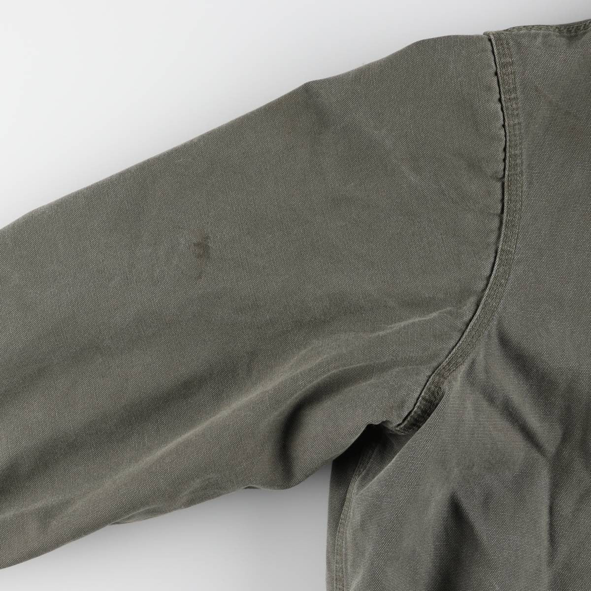 - Stain on the back, right shoulder, and forearms. Rubbing on the ends of both sleeves.
