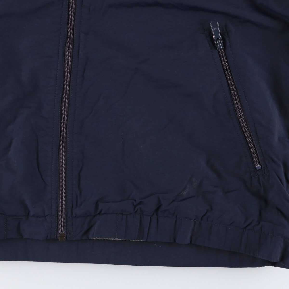 -Stain on the back right hip, right hem, left and right sleeve ends