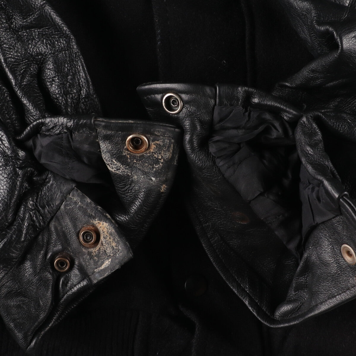 - Stain and rust on the inside, collar and both cuffs. Rubbing on the collar.