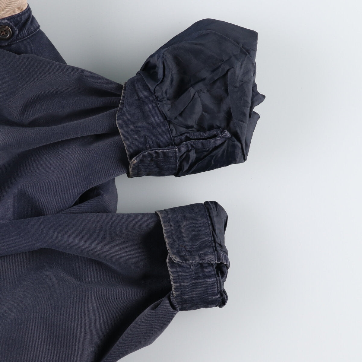 - Rubbing on the front, abdomen, hem and both sleeves, fraying on the right arm