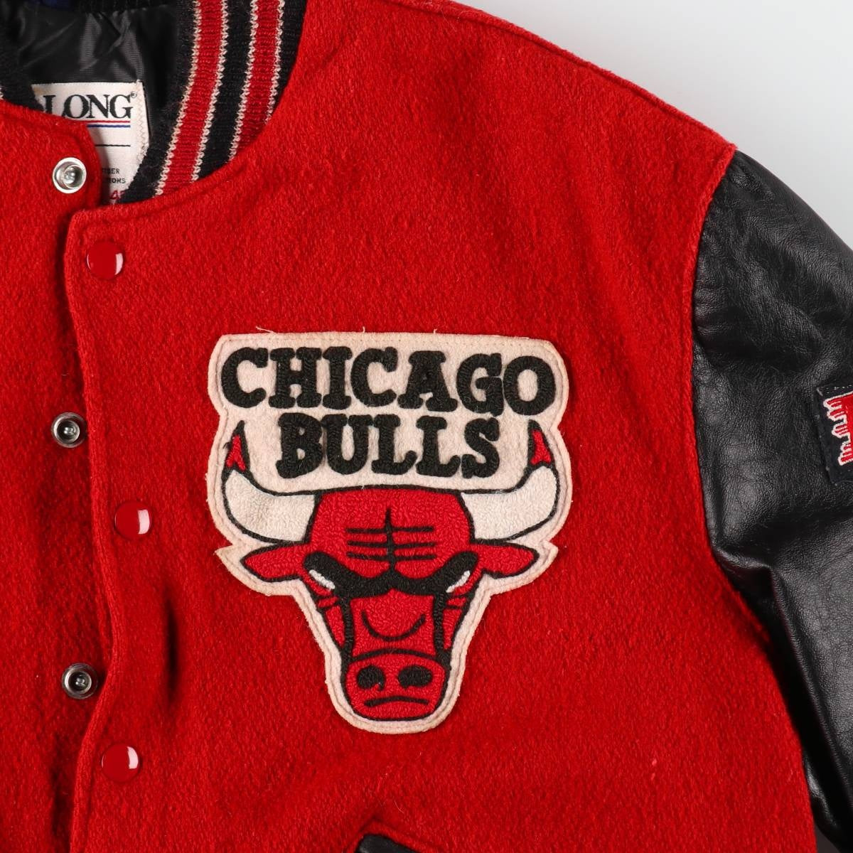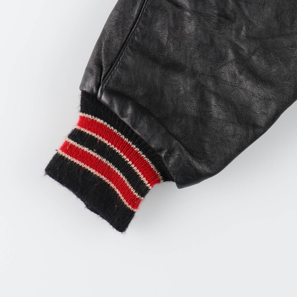 | Shape | Leather sleeve wool button varsity jacket |