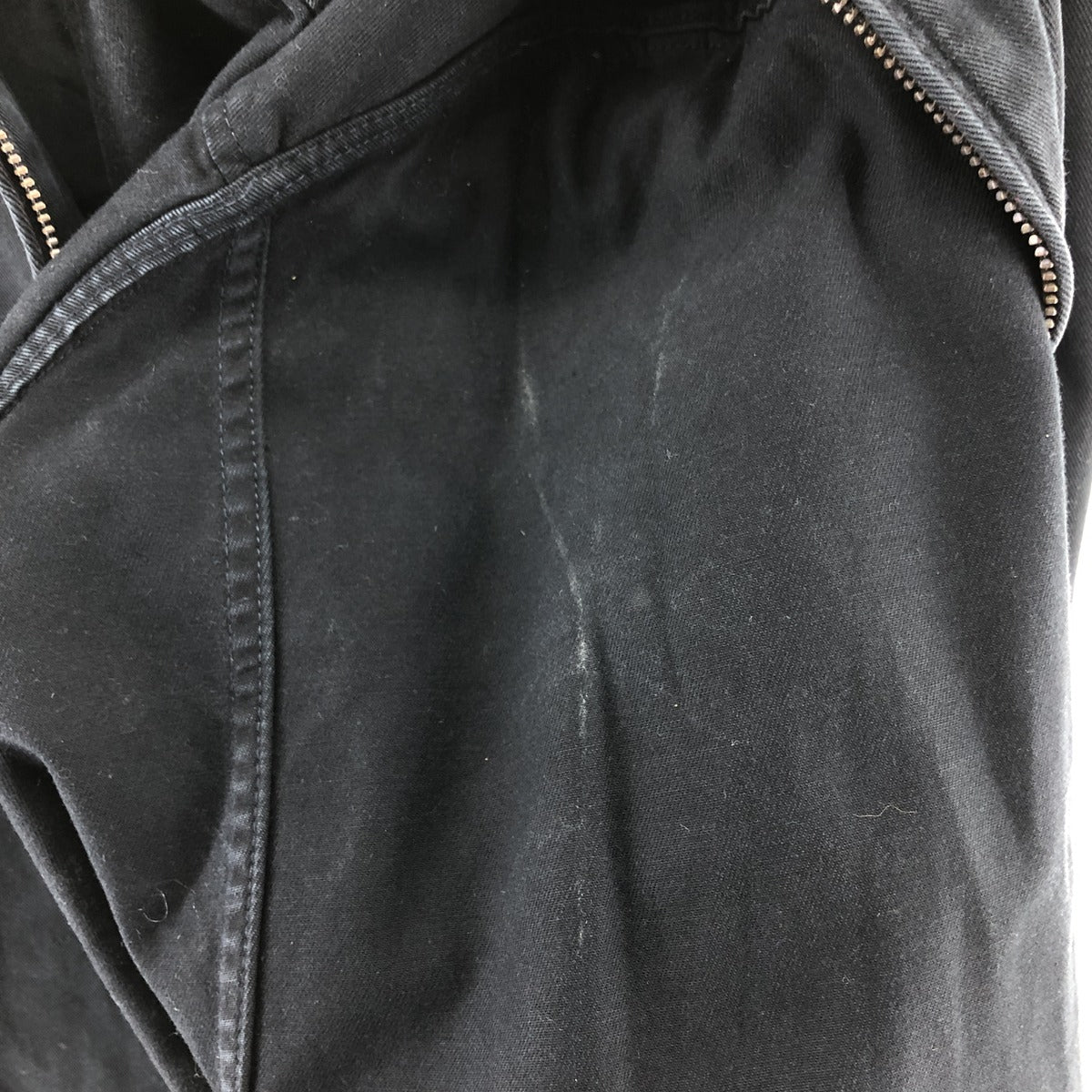 -Inner, stain around the zip line, neck and left arm