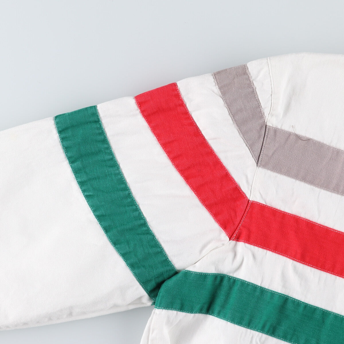 - Stain on the front, right shoulder, right side, hem, both arms and both sleeves