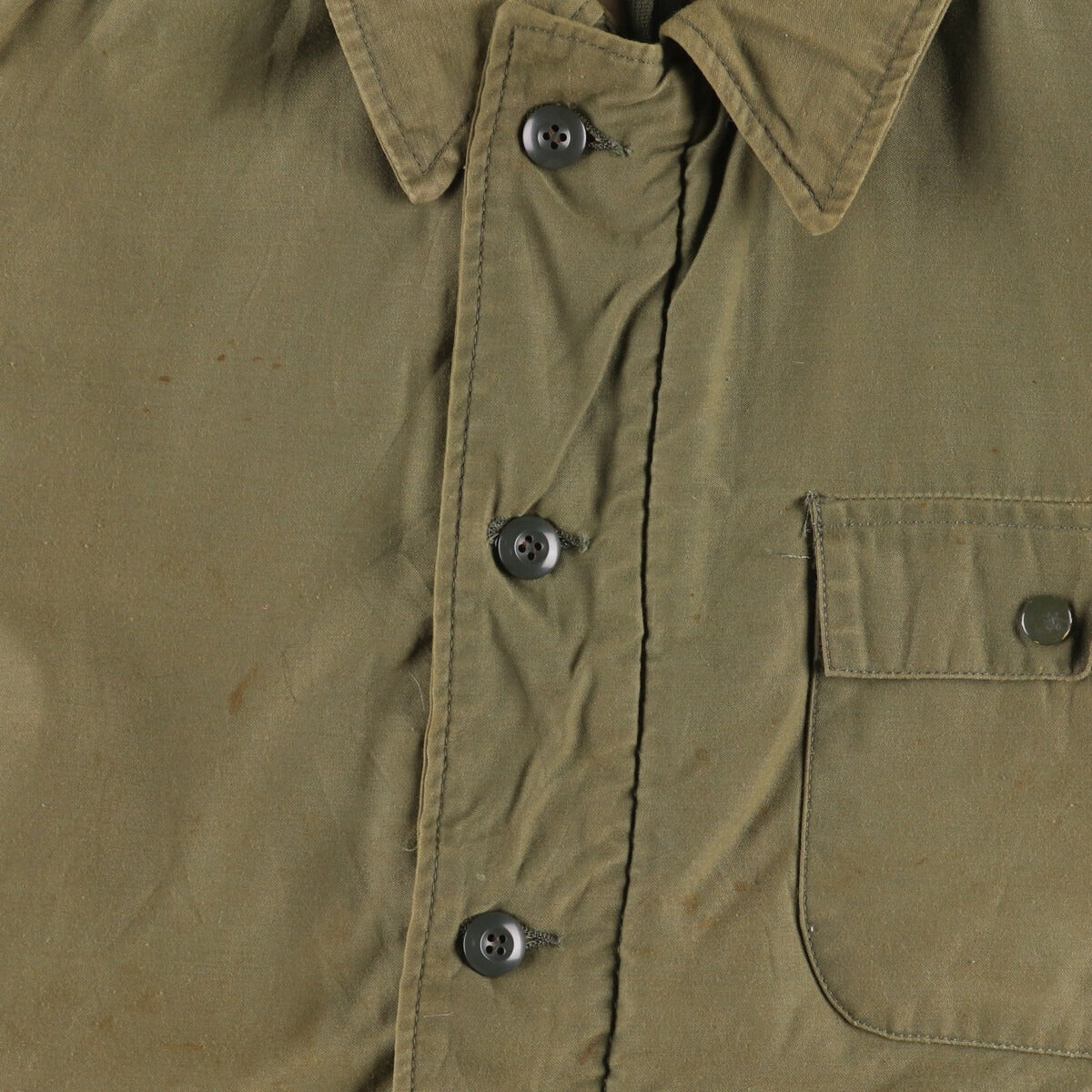 - Stain on the front, inside the placket, inside the left chest pocket, and inside the right abdominal pocket