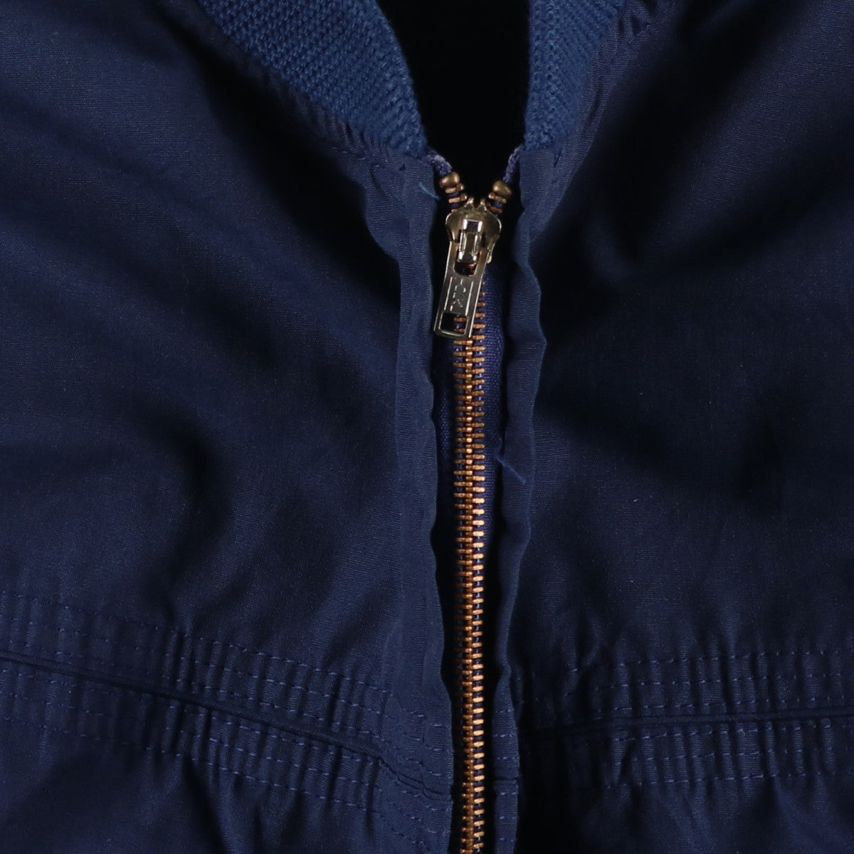 - Front zipper end tape peeling. Stain on right arm.