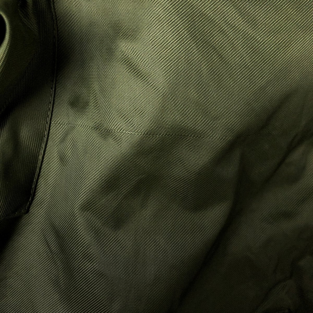 - The front zipper cannot be used due to a tear near the zipper end.