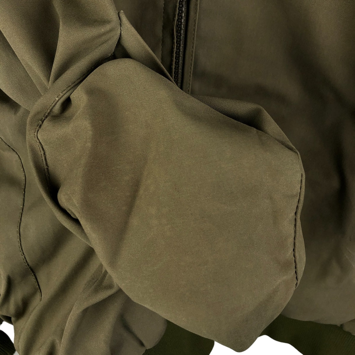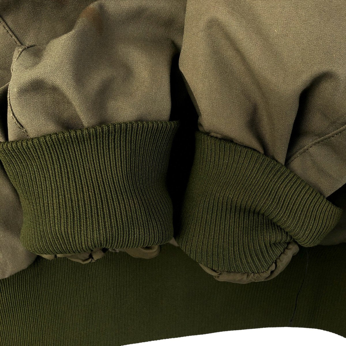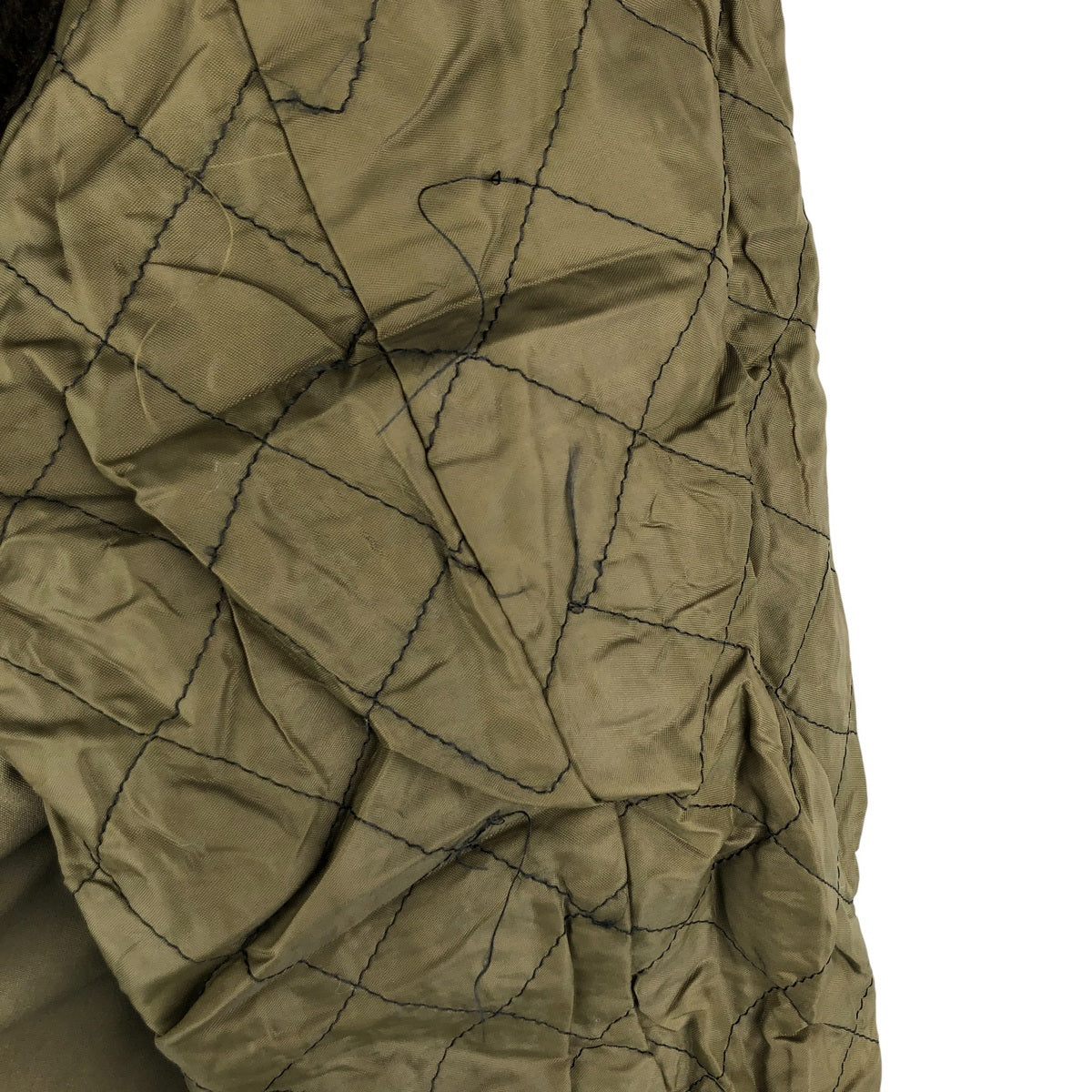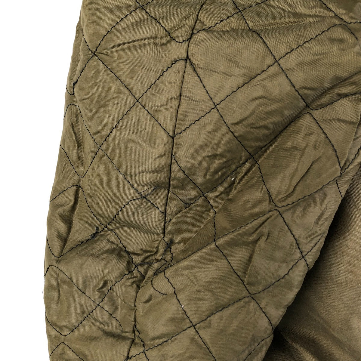 -Inner, left and right sleeve ends stained. Thread loss on left and right arms.