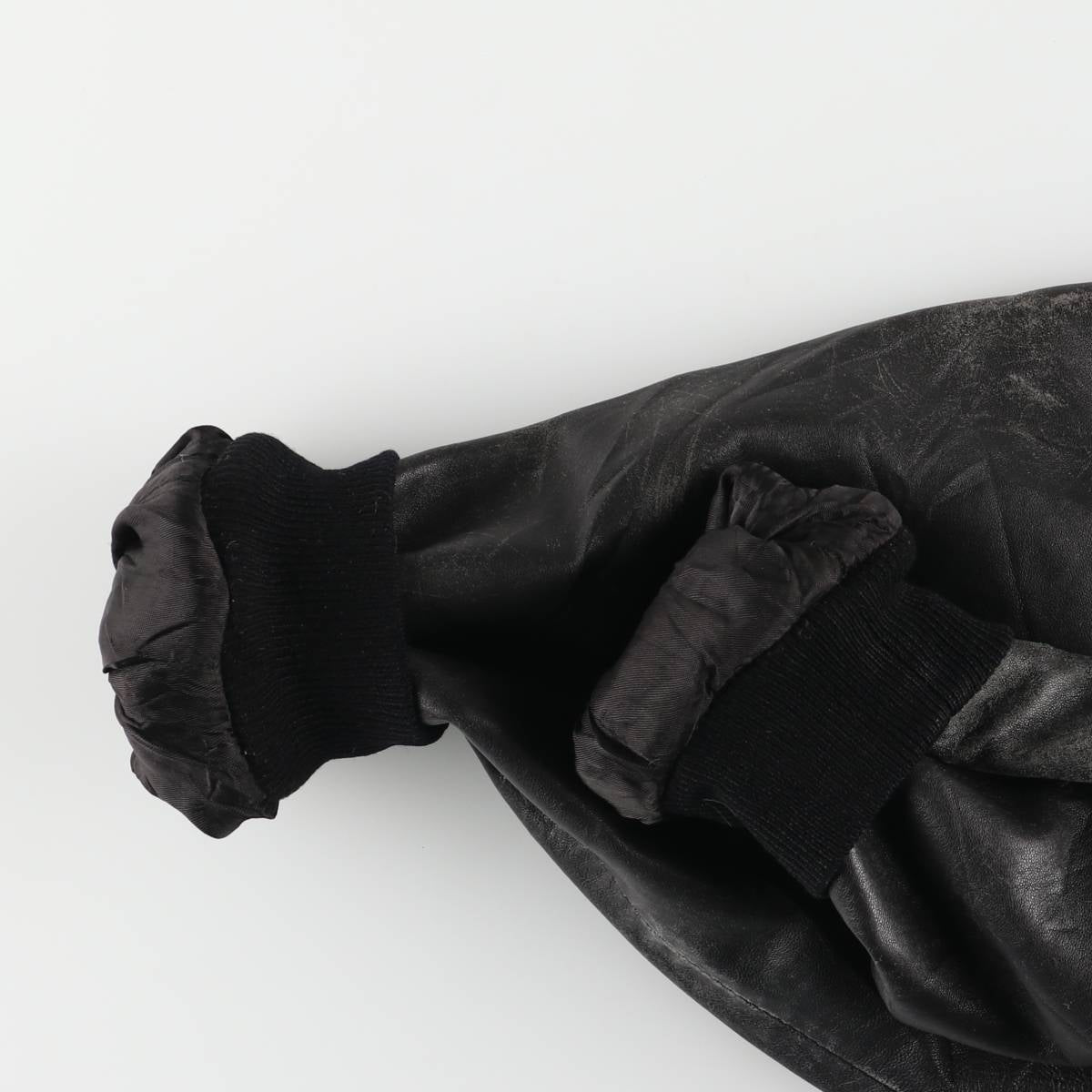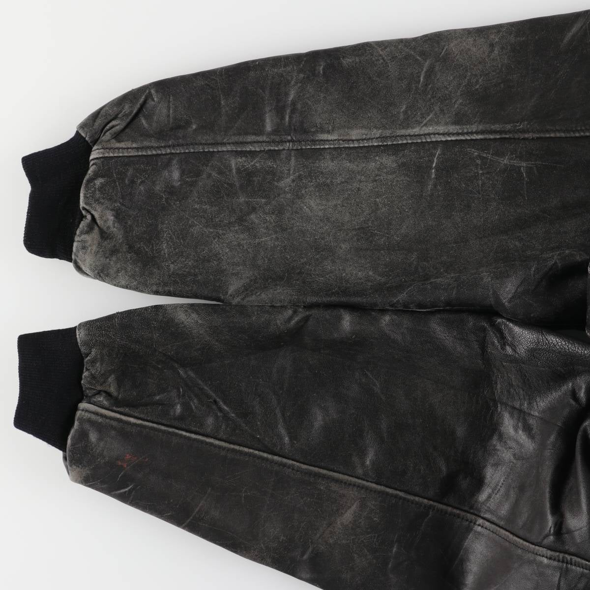 -Stain on the right sleeve end, tear on the right arm, rubbed on the left sleeve end