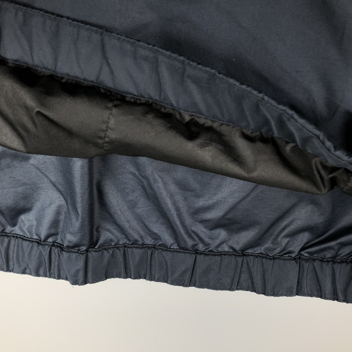 -Stain on the inside, entire hem and both sleeve ends