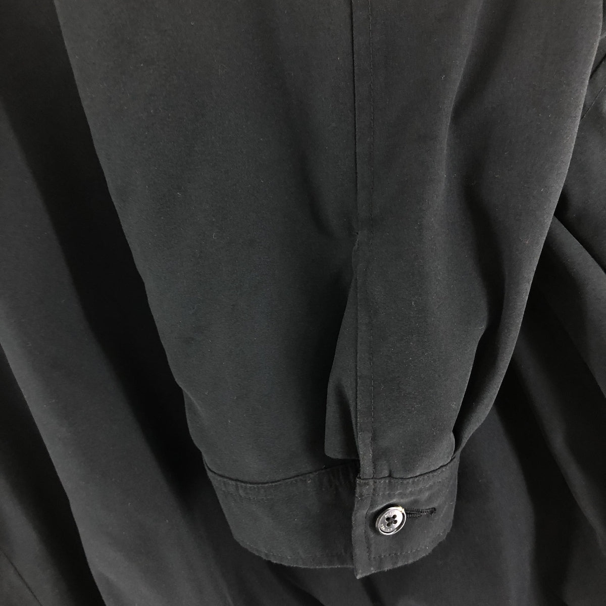 - Stain on front, right shoulder, both forearms, left sleeve end and abdomen