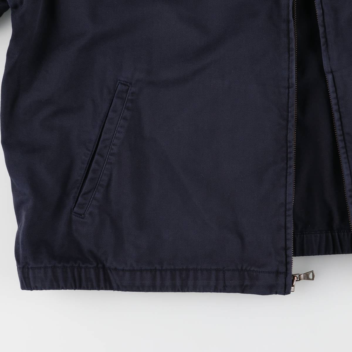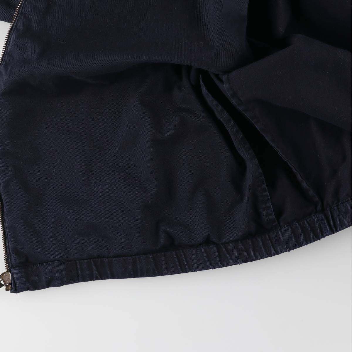 - Discolors on front, zip line length, chafing on hem, ribbed slack on hem