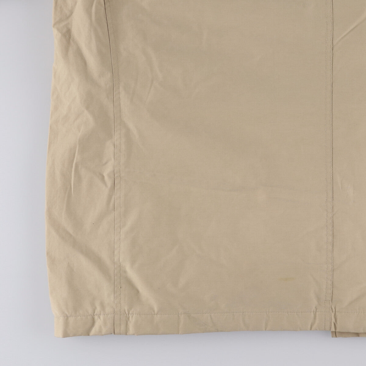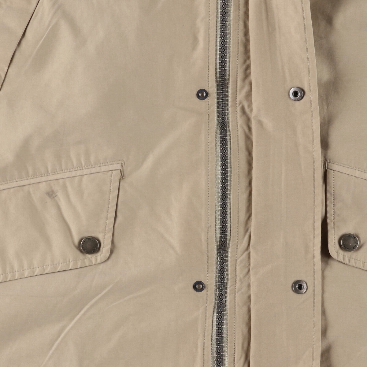 -Stain on back collar, both cuffs, waist, and hem. Stain, rubbing, and loose threads on inside right sleeve.