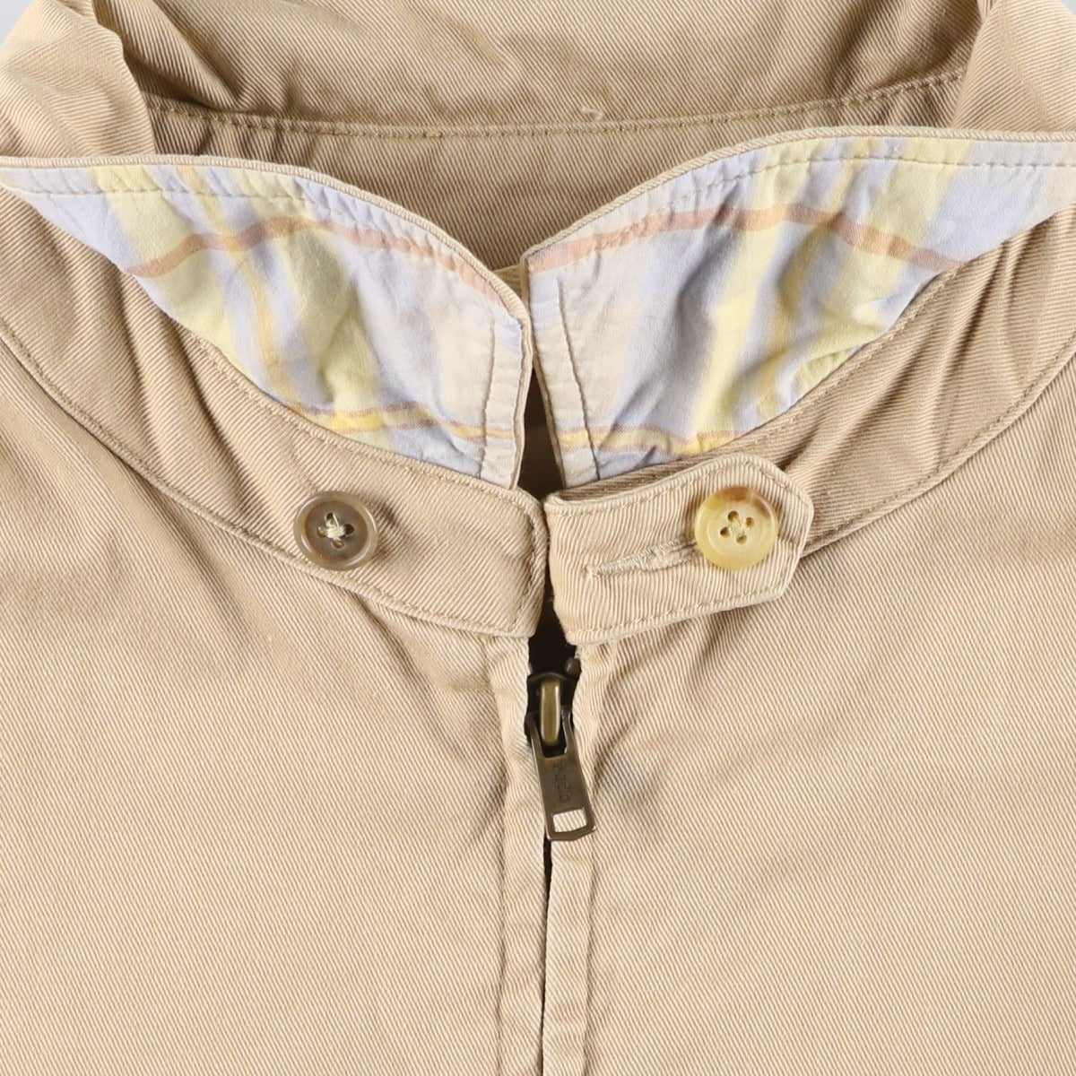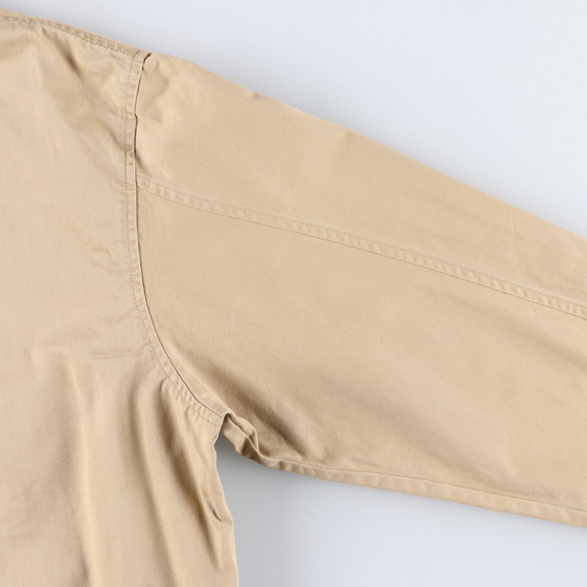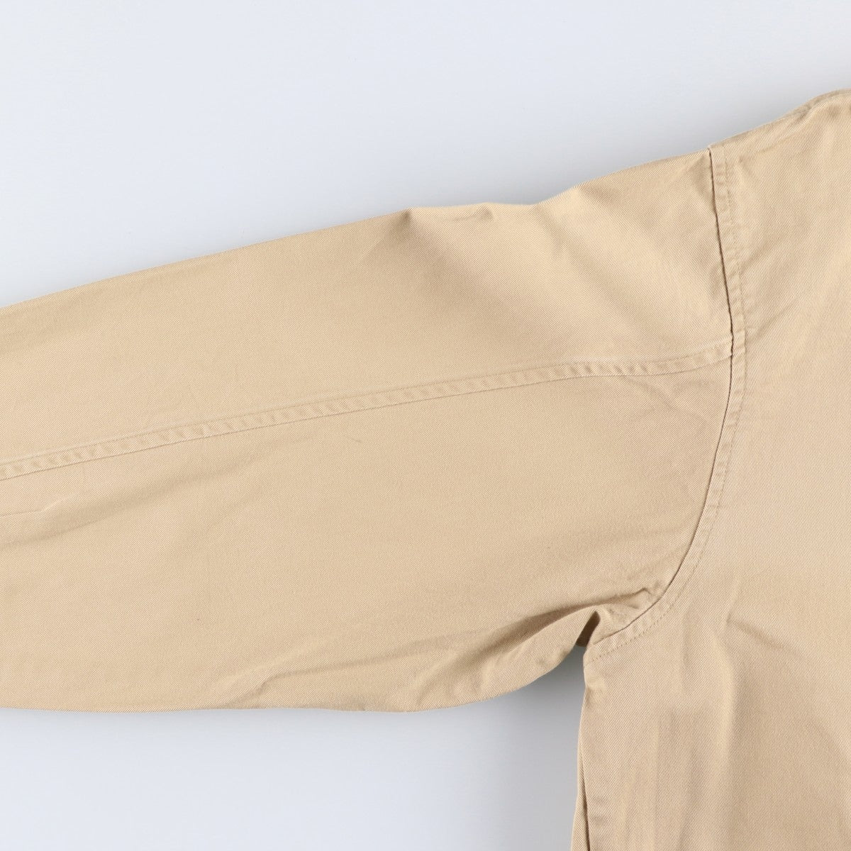 -Stain on front and left arm. Repair mark on right collar button.