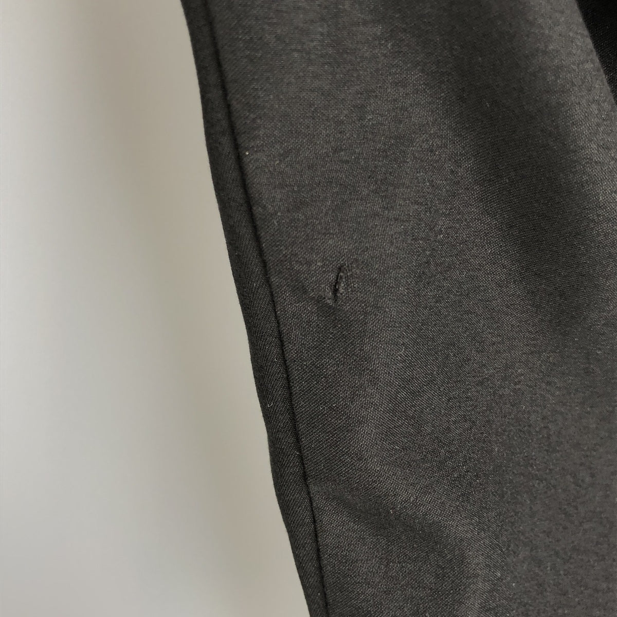 - Later, there is some rubbing on the right arm and a repair mark on the right sleeve button.